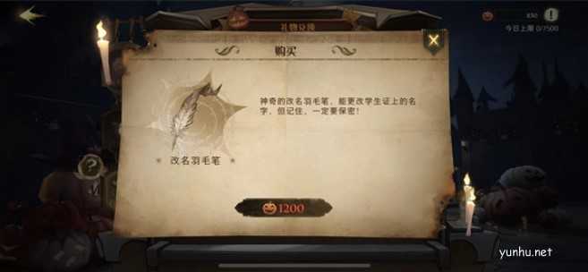 4、接着玩家们就可以看到改名羽毛笔,花费1200南瓜币就可以获得。