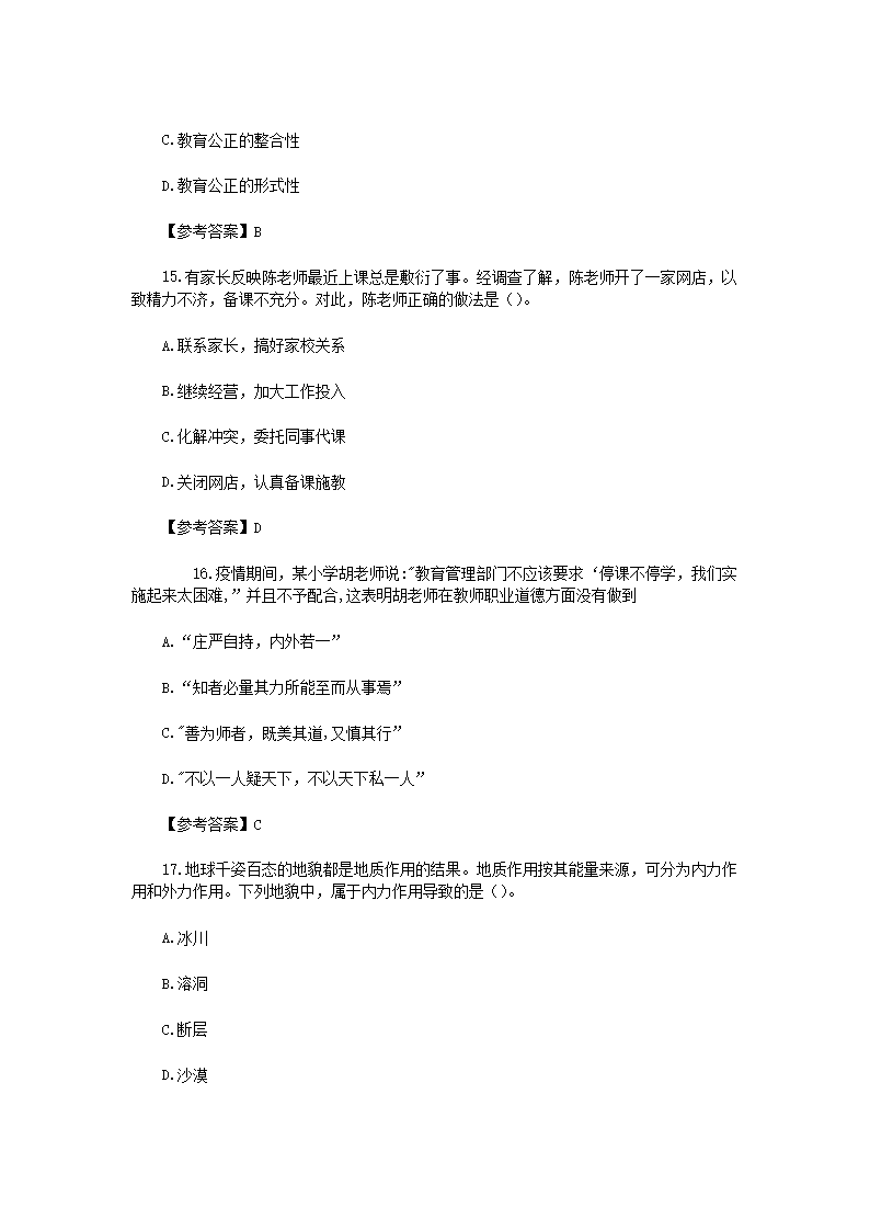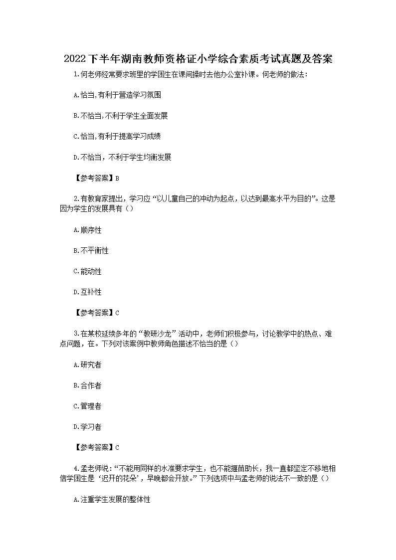 2022下半年湖南教师资格证小学综合素质考试真题及答案(Word版)06-02