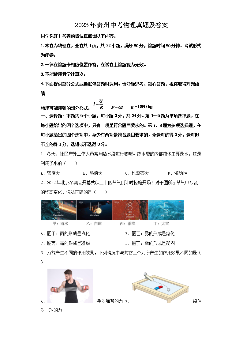 2023年贵州中考物理真题及答案(Word版)07-01