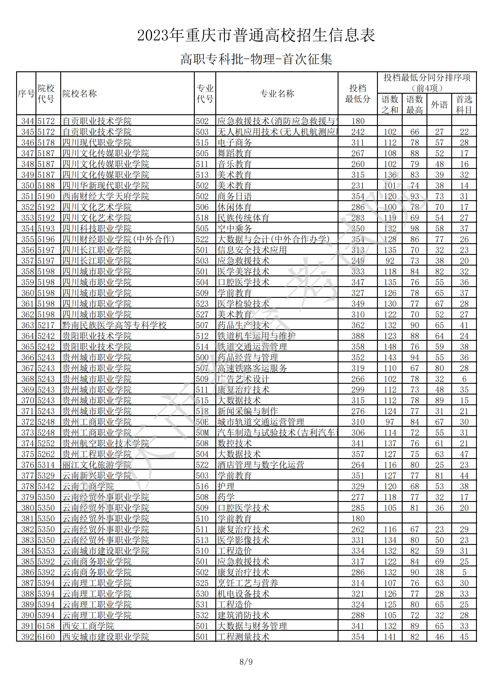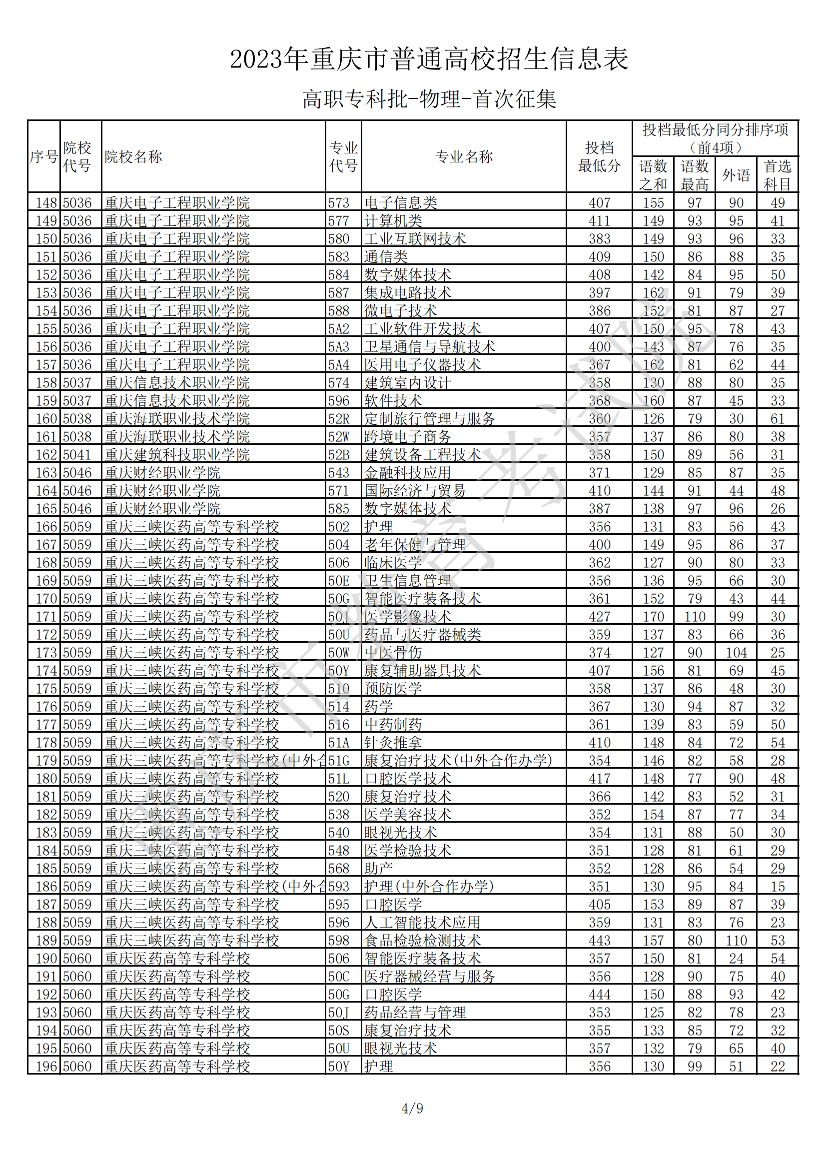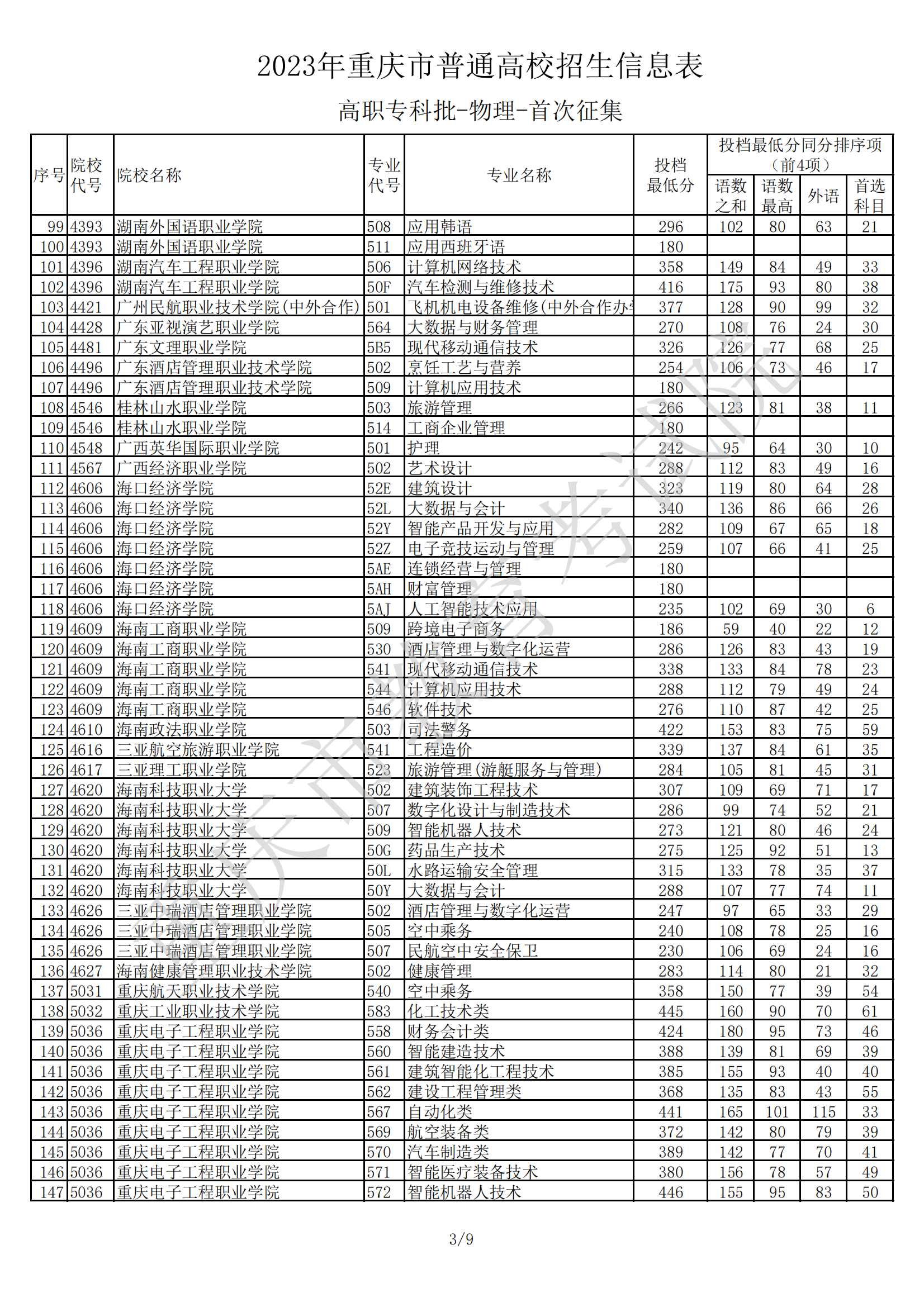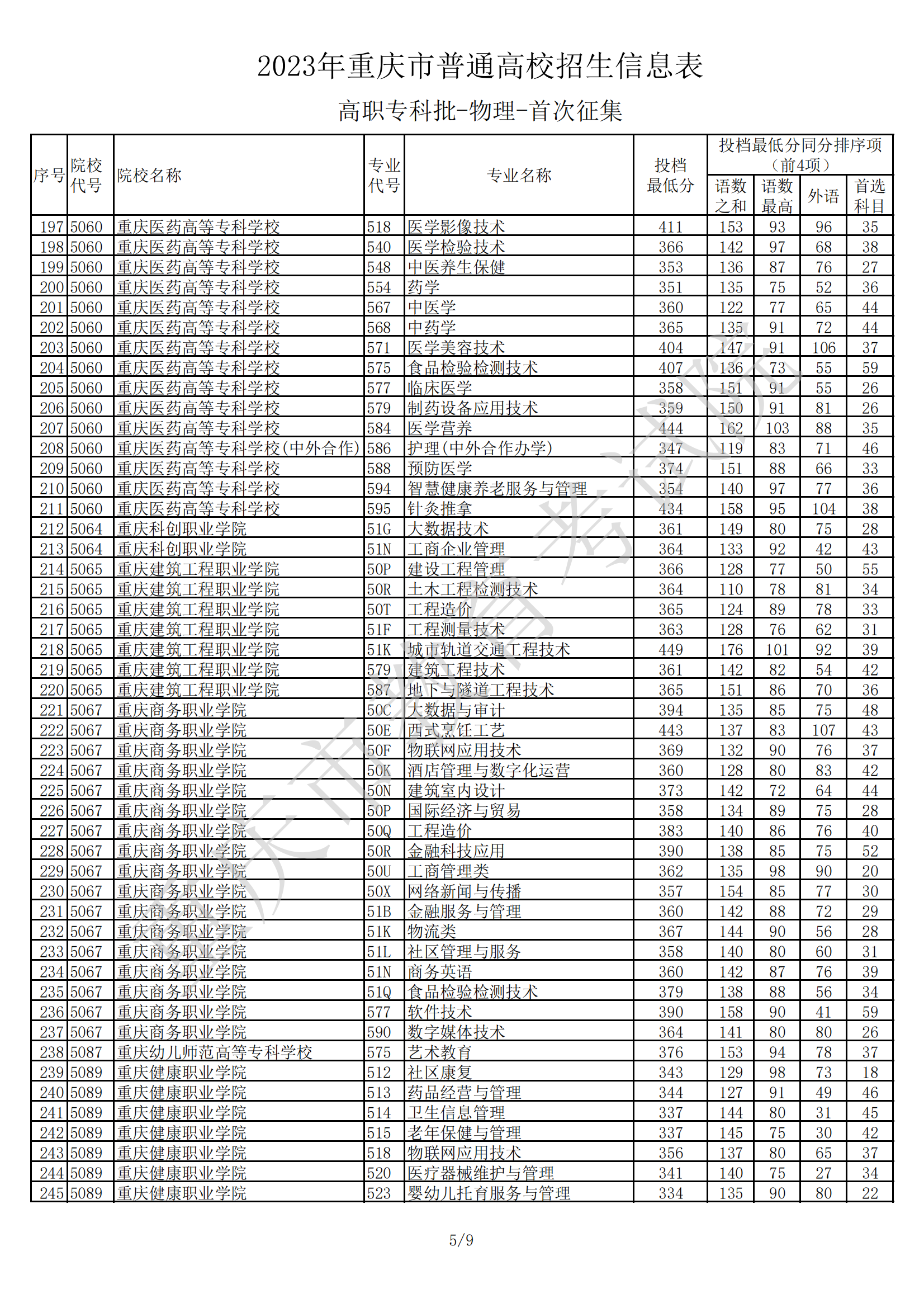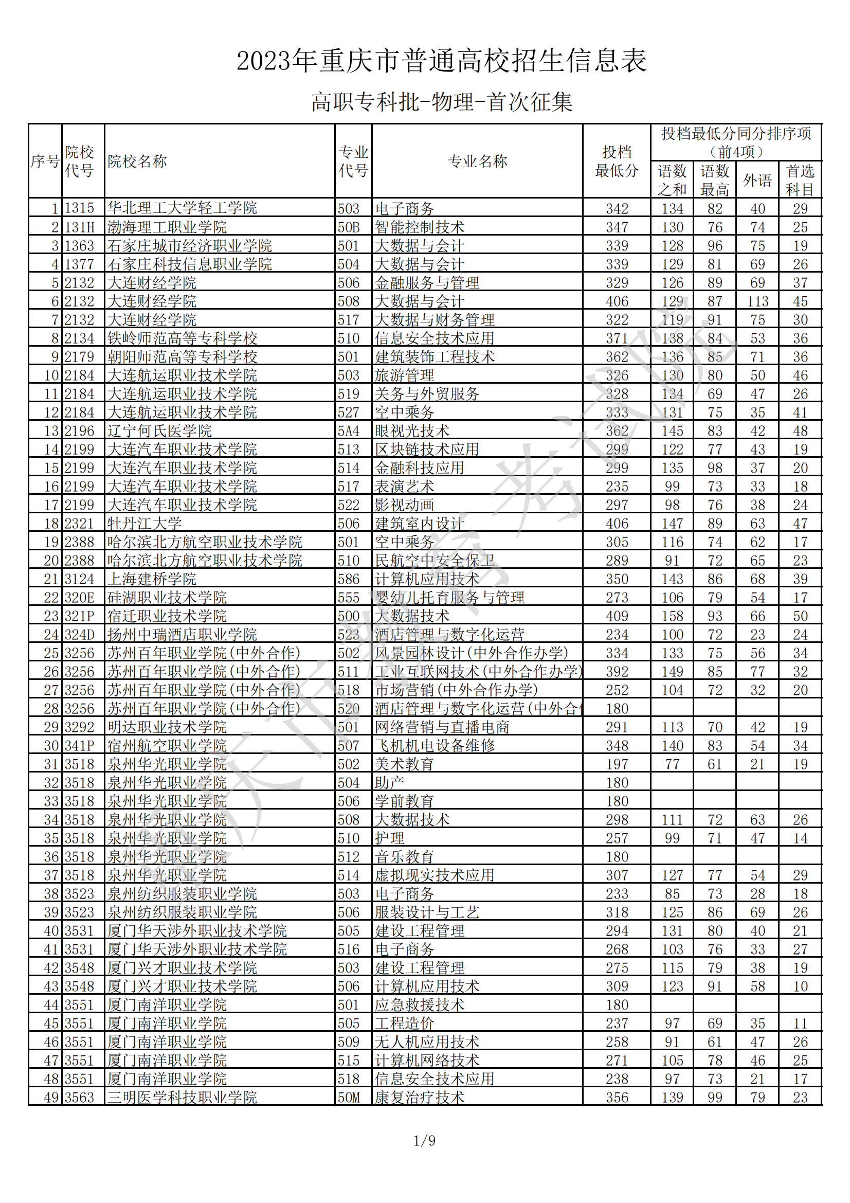 2023年重庆市普通高校招生信息表(高职专科批-物理-首次征集)08-11