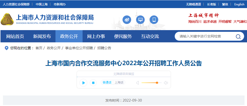 2022年上海市国内合作交流服务中心工作人员公开招聘公告10-01