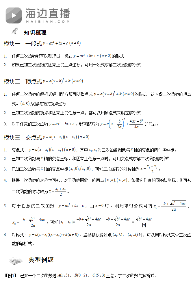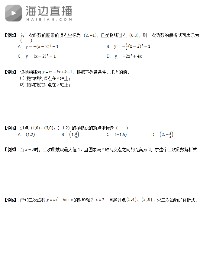 2017中考数学复习:二次函数的解析式与换07-10