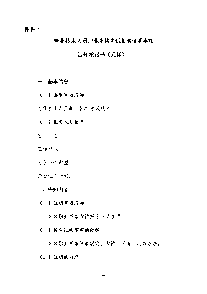 本考试报名证明事项推行告知制。报考人员须仔细阅读《报考须知》,本人签署《专业技术人员资格考试报名证明事项告知制报考告知书》(电子文本),不允许他人代签制报考告知书。报考人员报考时所填报的信息真实、准确、完整、有效,以及本人符合考试报名条件作出,并承担虚假的责任。报考人员应当按照考试组织机构核查规定和要求提交或补充提交有关材料。对逾期或不接受核查的,视为放弃考试资格。对不实行为记入专业技术人员资格考试诚信档案库。