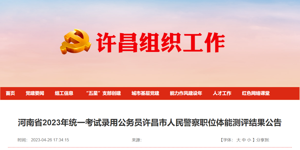 2023年河南许昌市公务员人民警察职位体能测评结果公告04-28