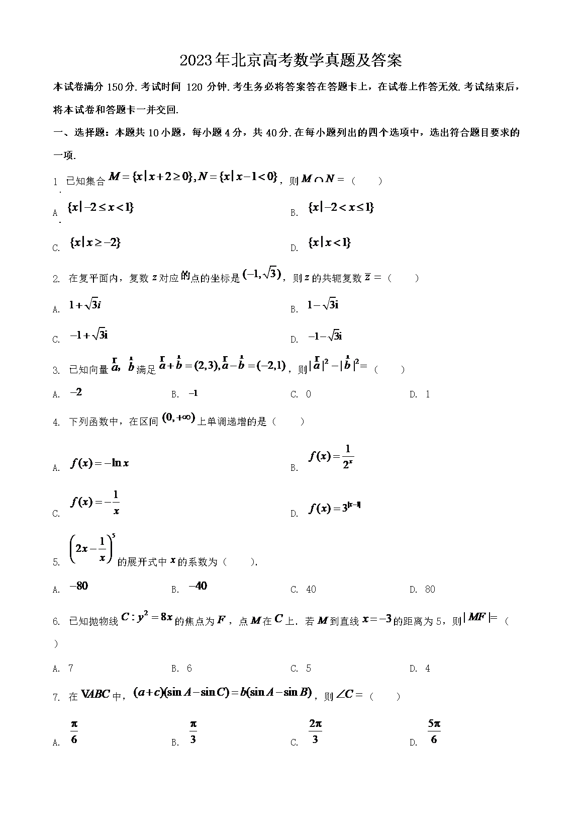 【文档预览】 文档大全网整理发布2023年北京高考数学真题及答案(Word版),前五页预览如下: