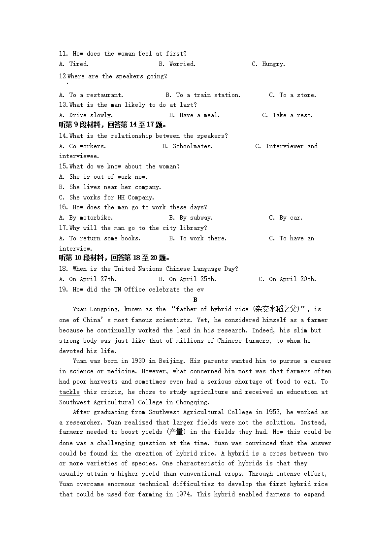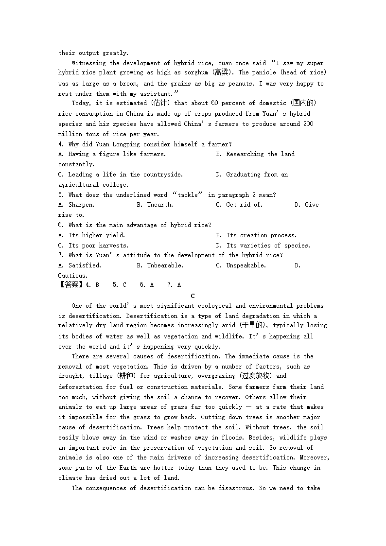 2022-2023年湖南永州高一英语下学期期末试卷及答案(Word版)10-20