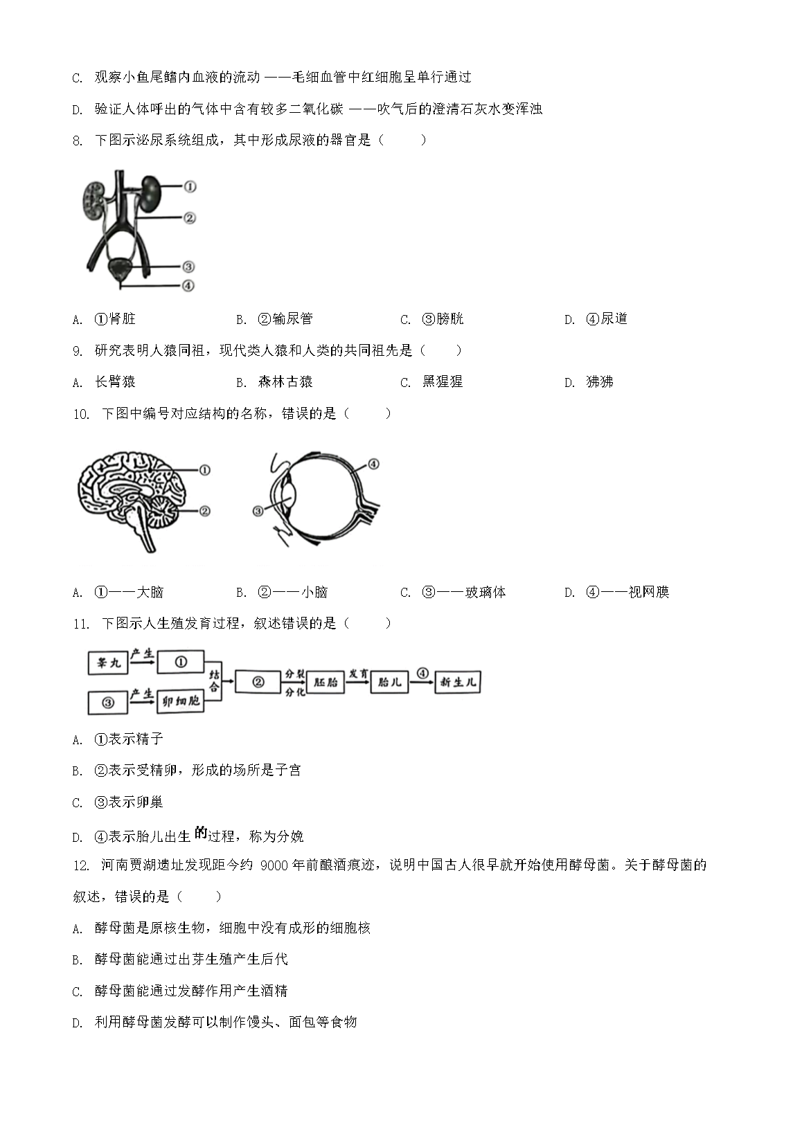 2023年重庆南岸中考生物真题及答案(Word版)06-19