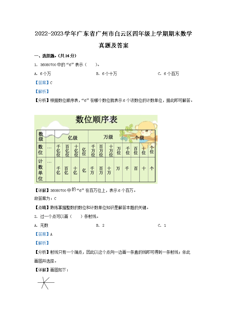 2022-2023学年广东省广州市白云区四年级上学期期末数学真题及答案(Word版)10-18