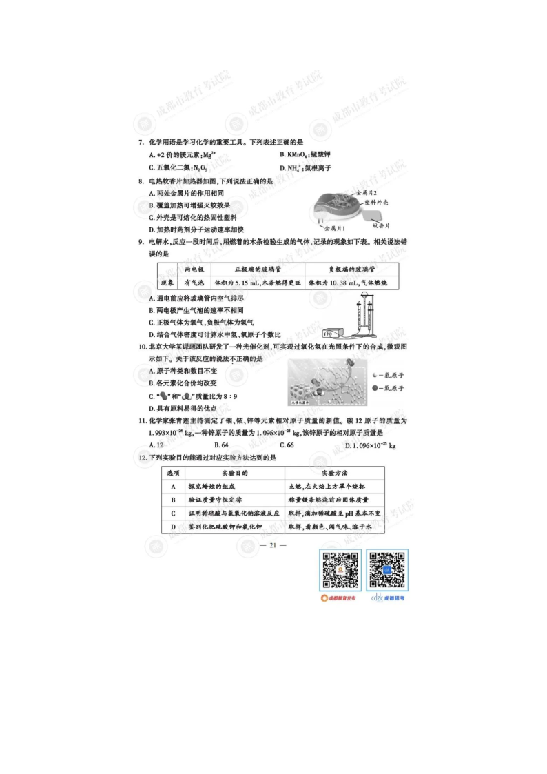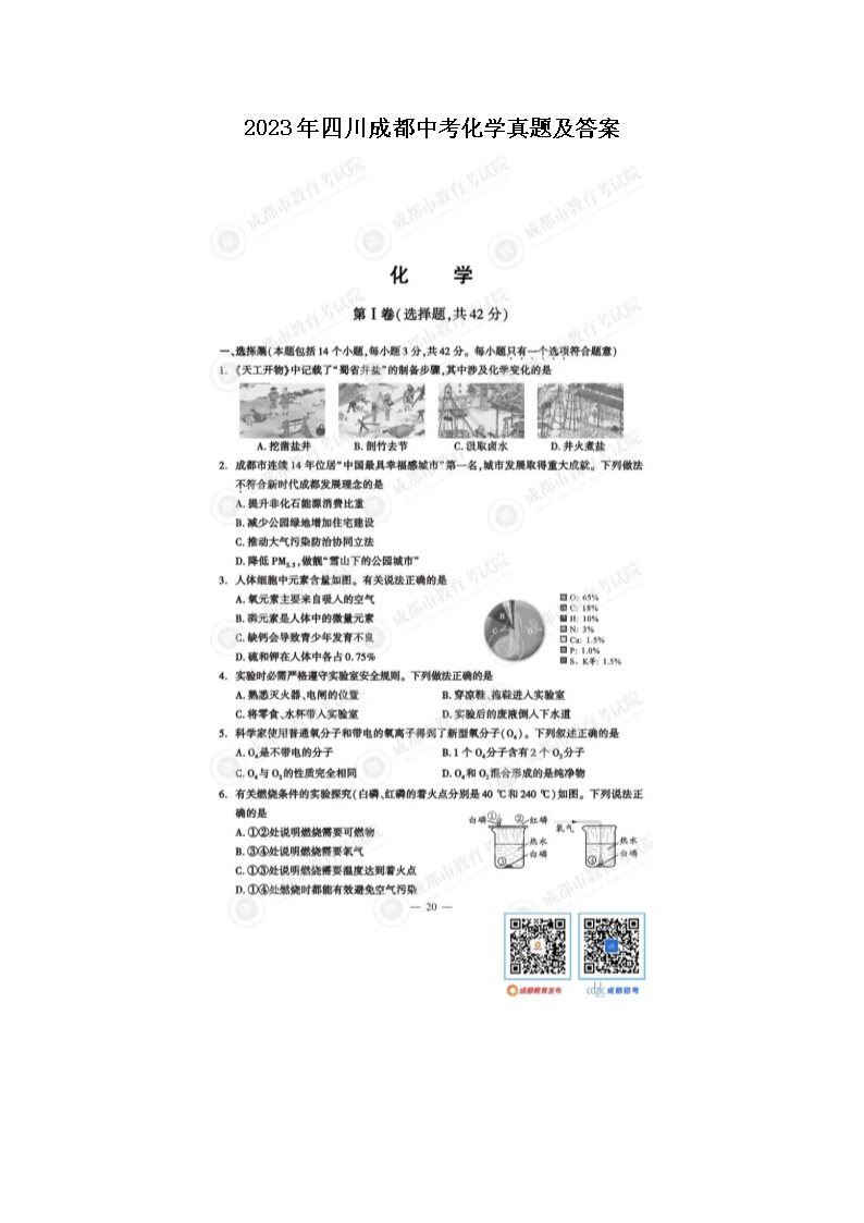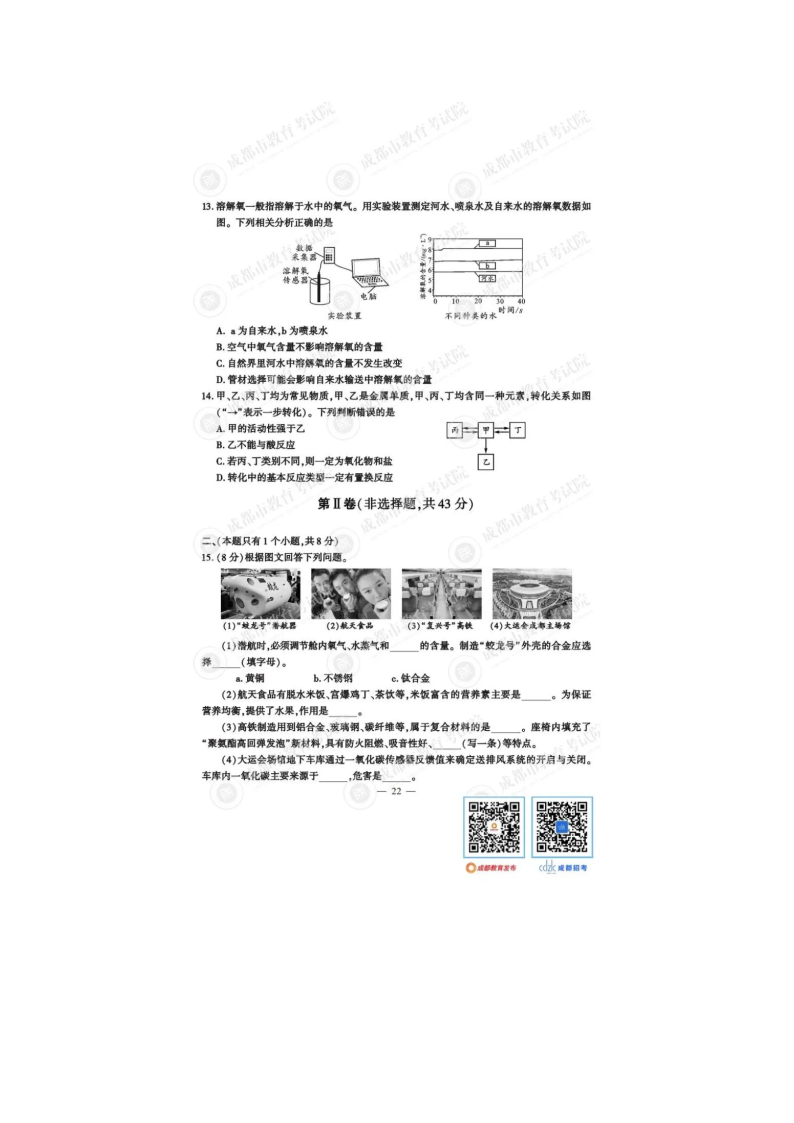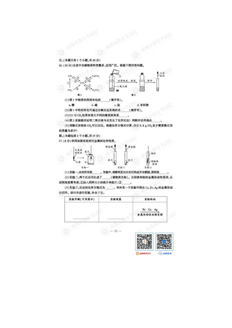 2023年四川成都中考化学真题及答案(图片版)06-15
