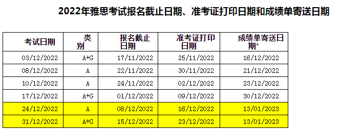 原文标题:2022年雅思考试报名截止日期、准考证打印日期和成绩单寄送日期
