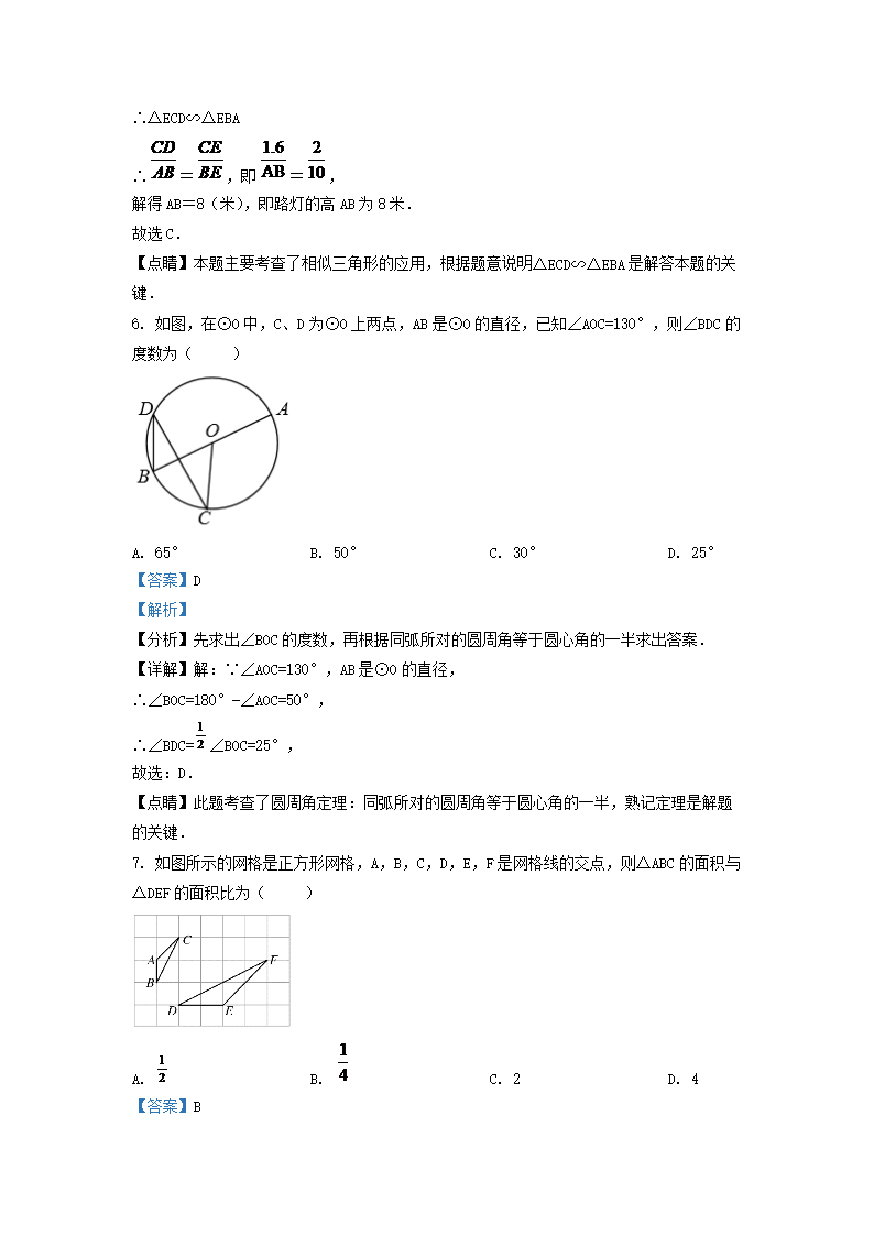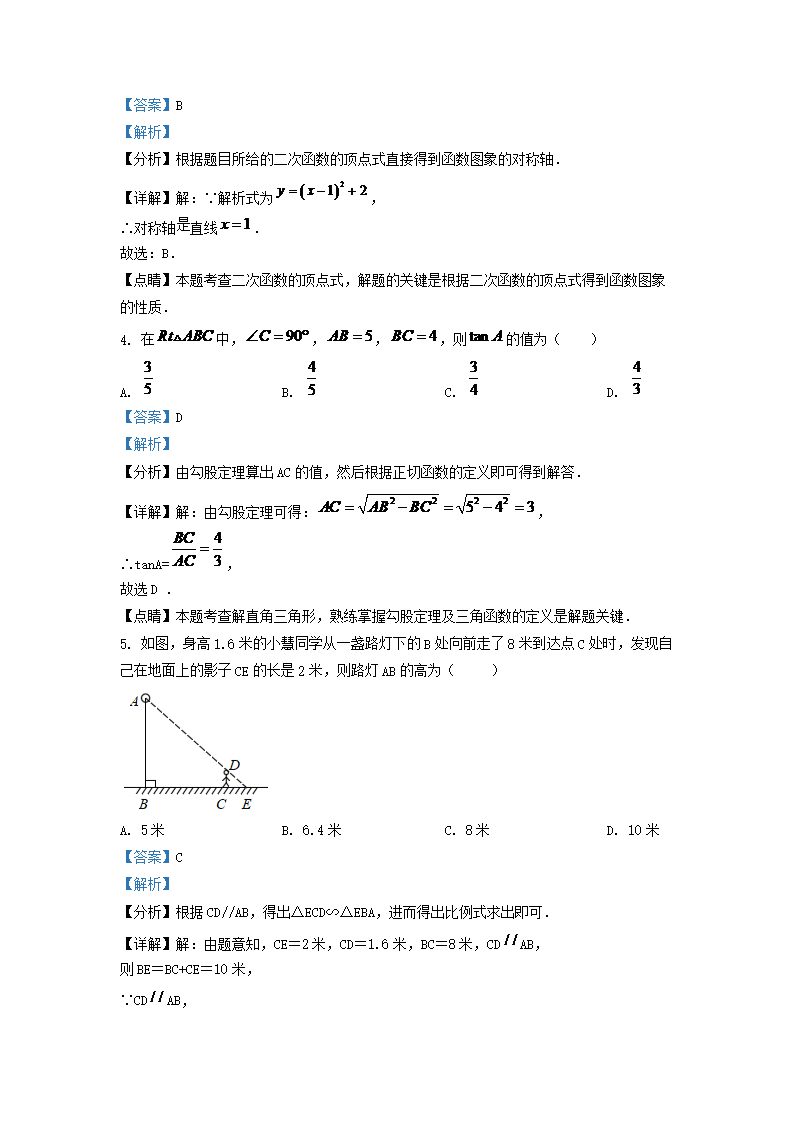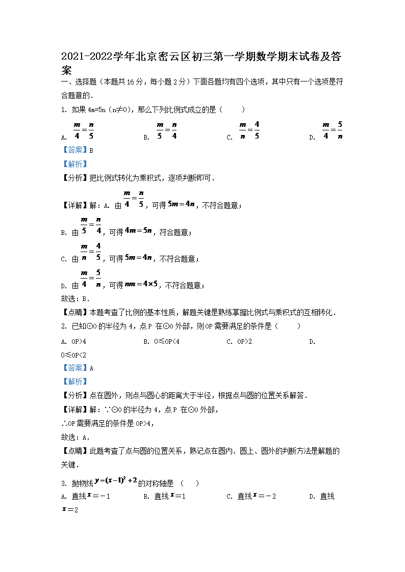 2021-2022学年北京密云区初三第一学期数学期末试卷及答案(Word版)07-04