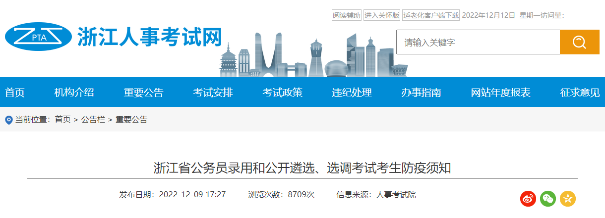 原文标题:浙江省公务员录用和公开遴选、选调考试考生防疫须知
