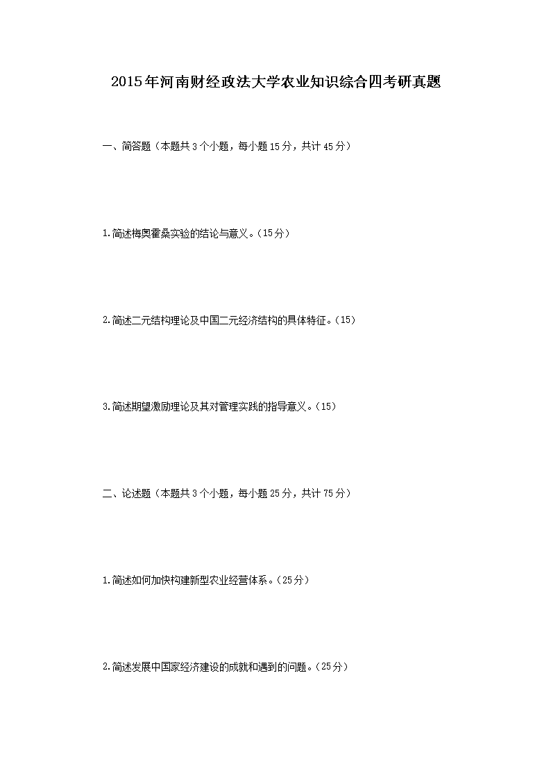 【文档预览】 文档大全网整理发布2015年河南财经政法大学农业知识综合四考研真题(Word版),前五页预览如下: