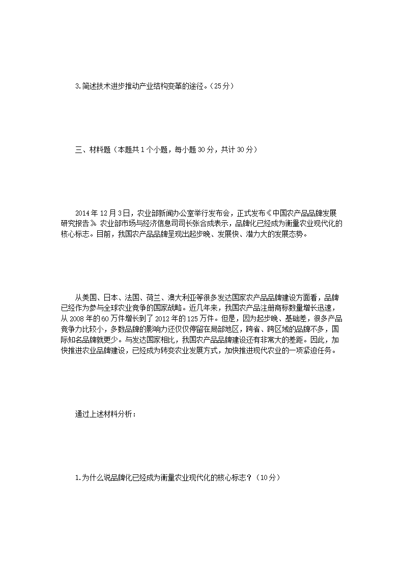 2015年河南财经政法大学农业知识综合四考研真题(Word版)06-17