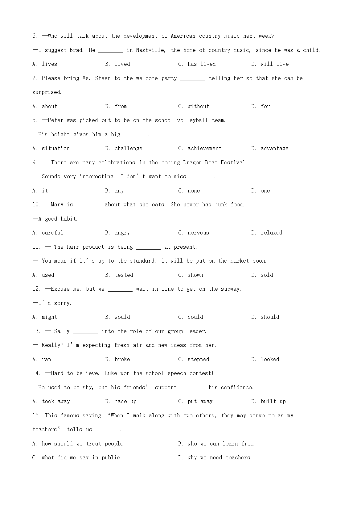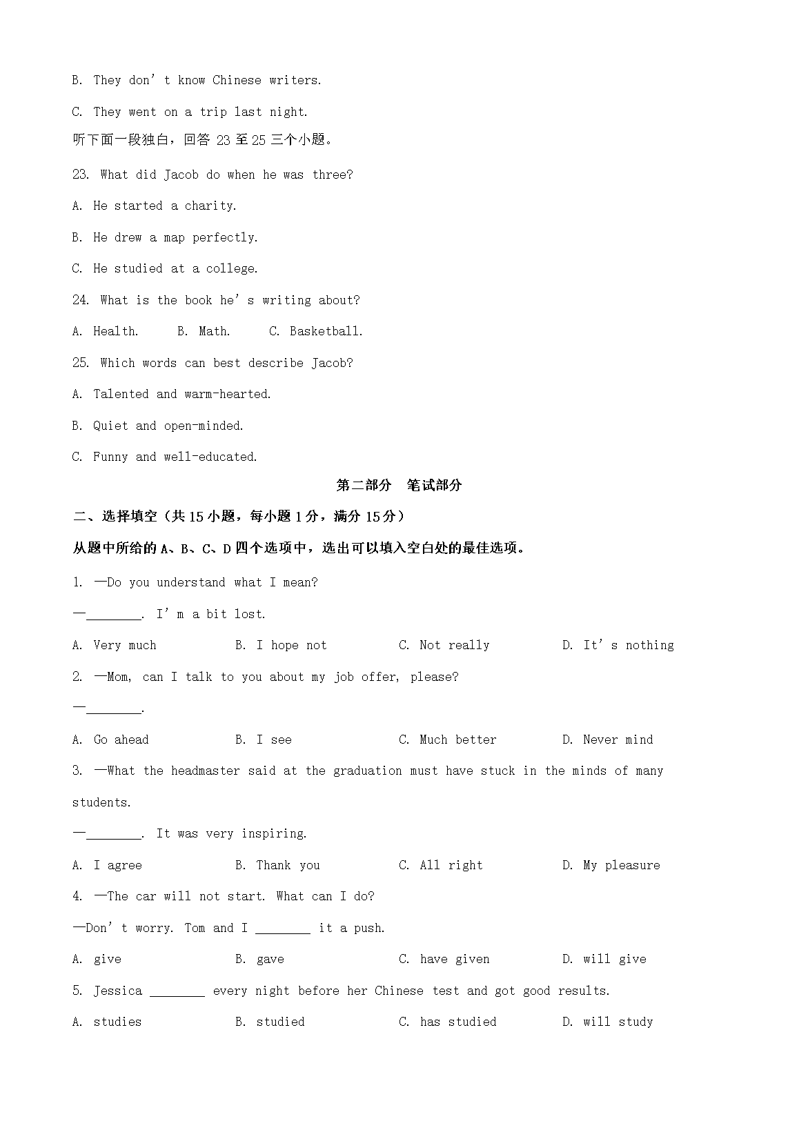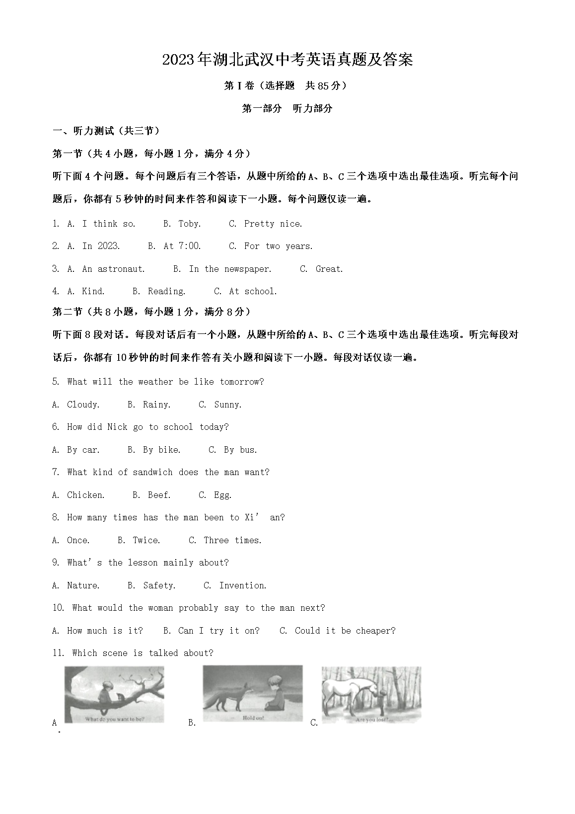 【文档预览】 文档大全网整理发布2023年湖北武汉中考英语真题及答案(Word版),前五页预览如下: