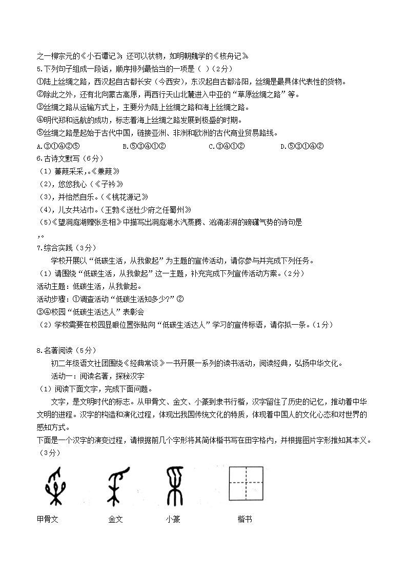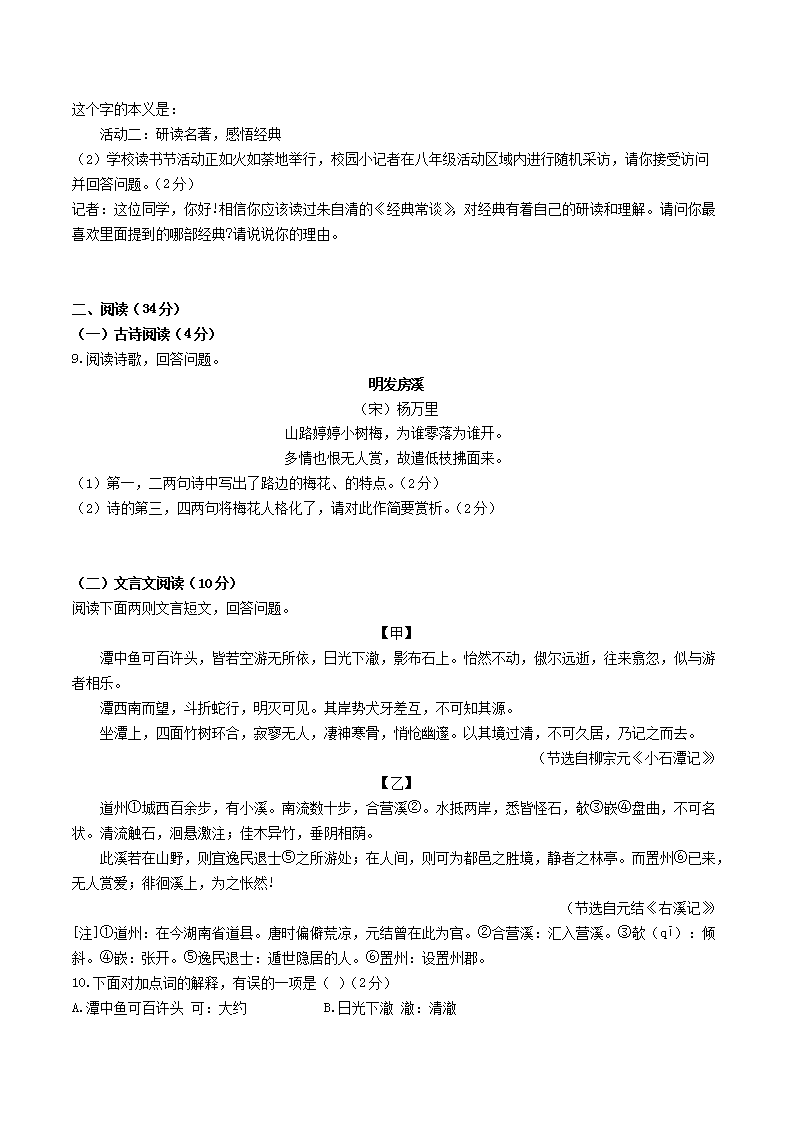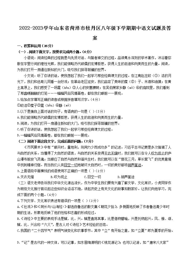 2022-2023学年山东省菏泽市牡丹区八年级下学期期中语文试题及答案(Word版)10-13