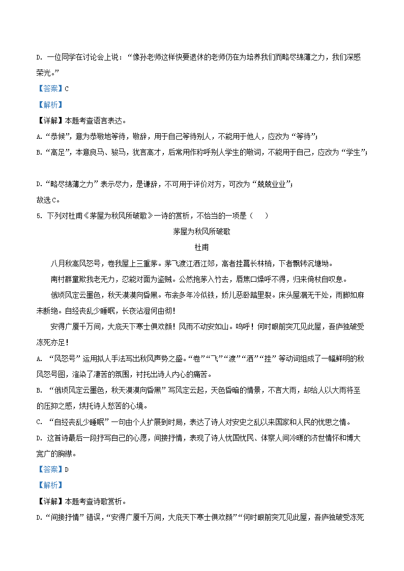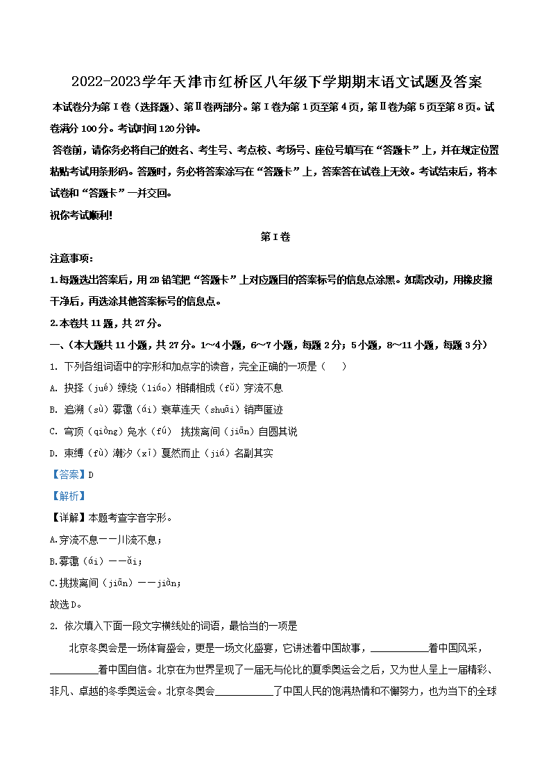 2022-2023学年天津市红桥区八年级下学期期末语文试题及答案(Word版)09-28