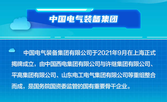 中国电气装备集团有限公司(简称中国电气装备)是由中国西电集团有限公司与国家电网公司所属许继集团有限公司、平高集团有限公司、山东电工电气集团有限公司等重组整合而成,为国务院国资委监管的国有重要骨干企业。