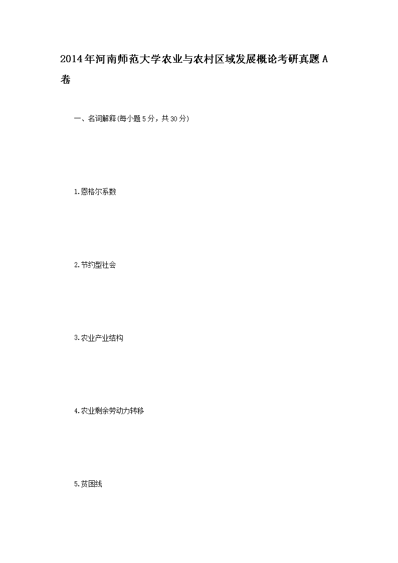 【文档预览】 文档大全网整理发布2014年河南师范大学农业与农村区域发展概论考研真题A卷(Word版),前五页预览如下: