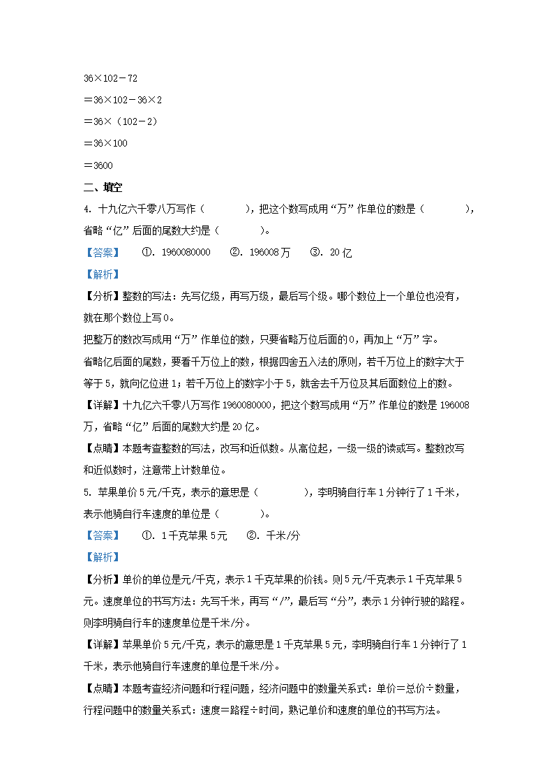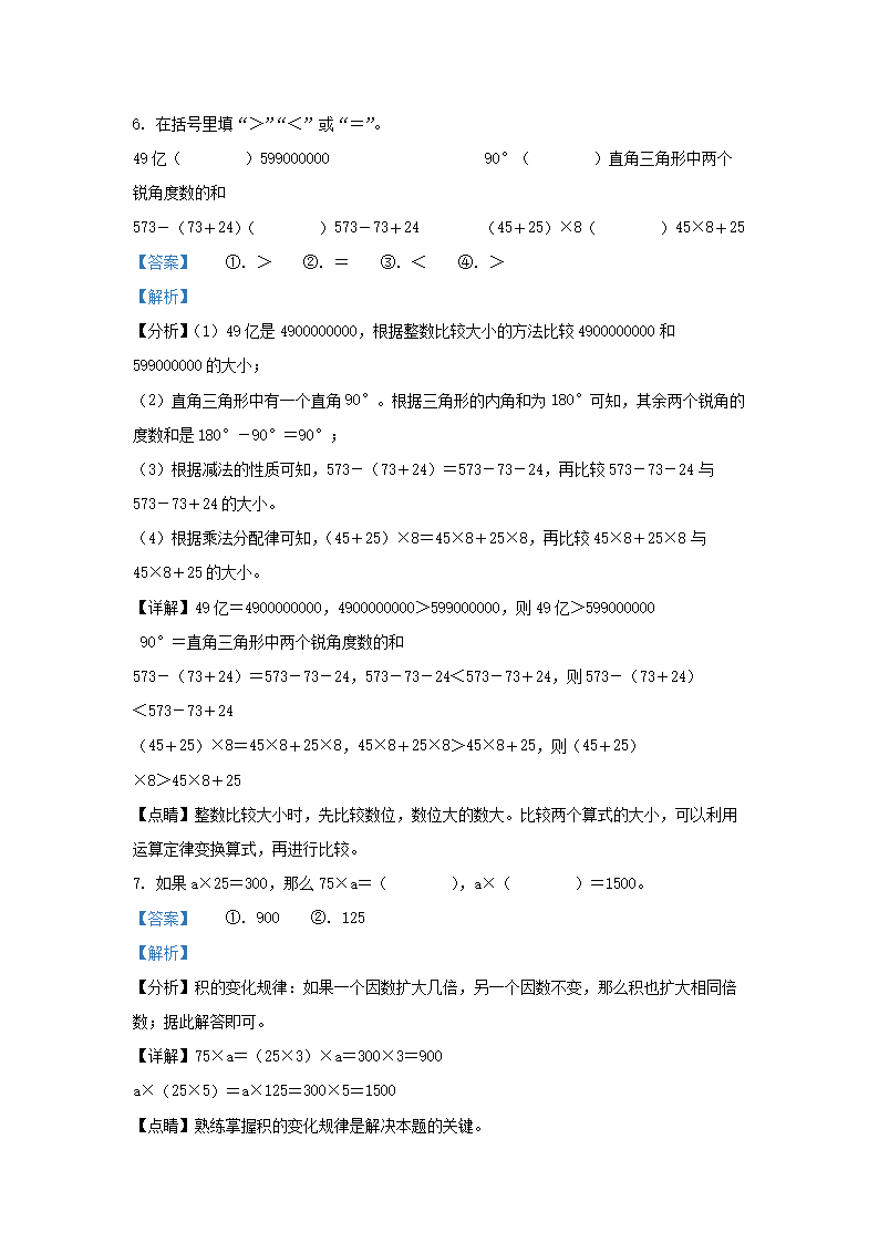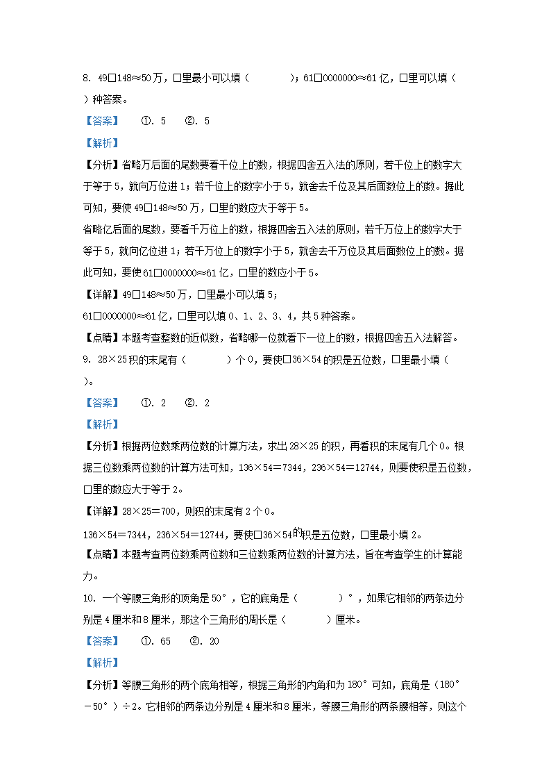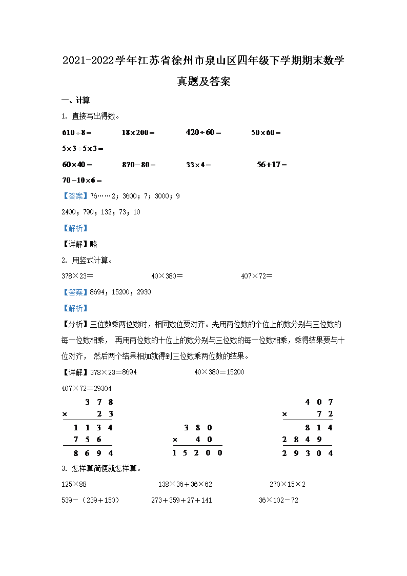 2021-2022学年江苏省徐州市泉山区四年级下学期期末数学真题及答案(Word版)07-20