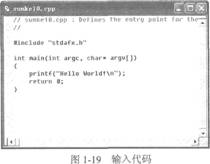 (7)双击主函数main{int argc,char*a}进入主函数的程序代码中进行程序编辑,如图1-19所示。