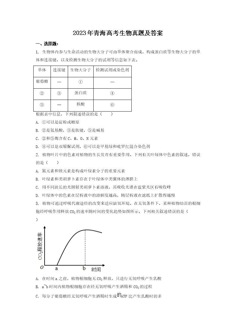 【文档预览】 文档大全网整理发布2023年青海高考生物真题及答案(Word版),前五页预览如下: