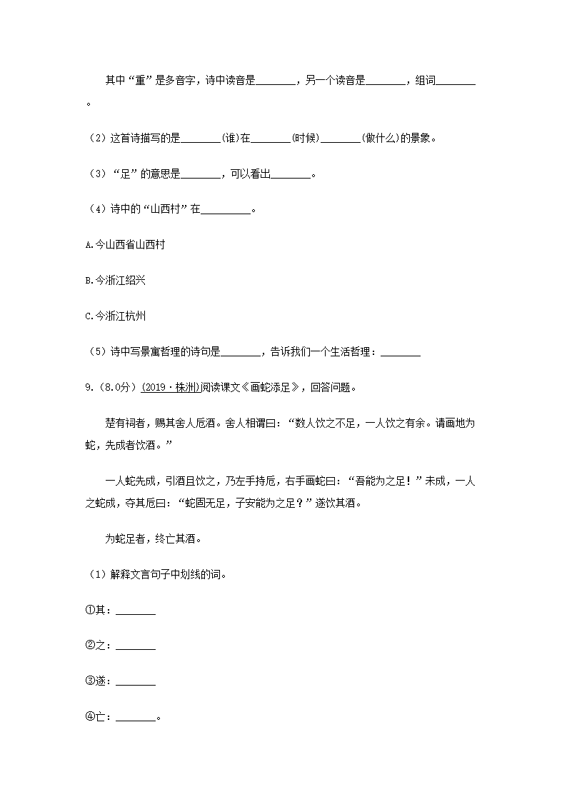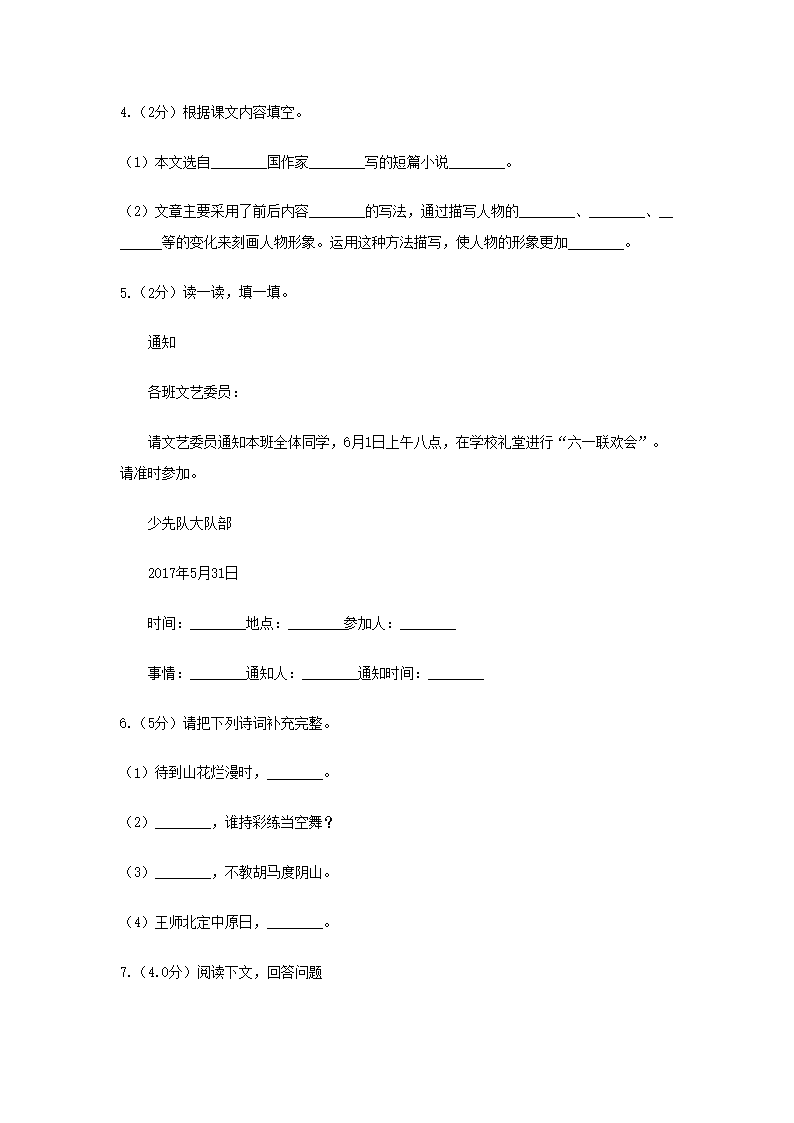 2021年西藏六年级下册语文期末考试试卷及答案(Ⅱ卷)(Word版)07-31