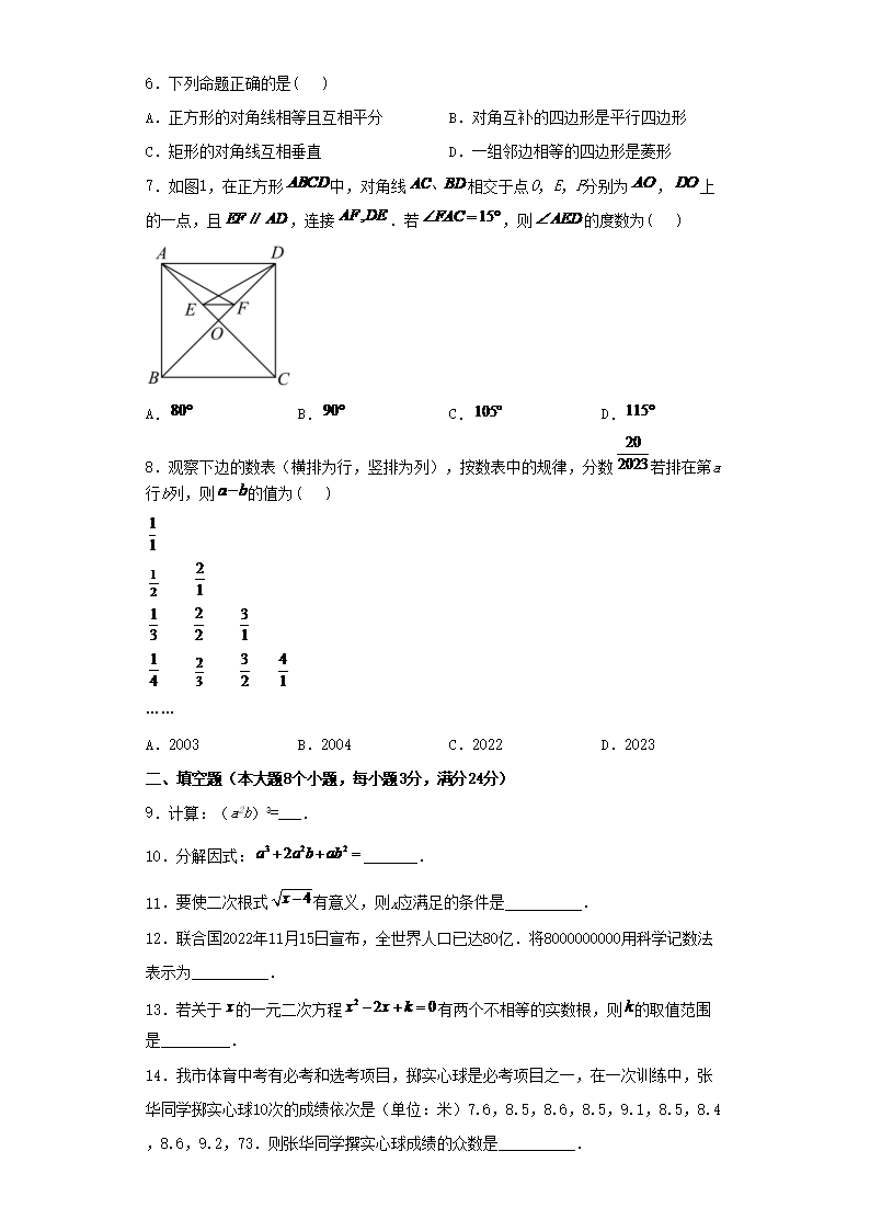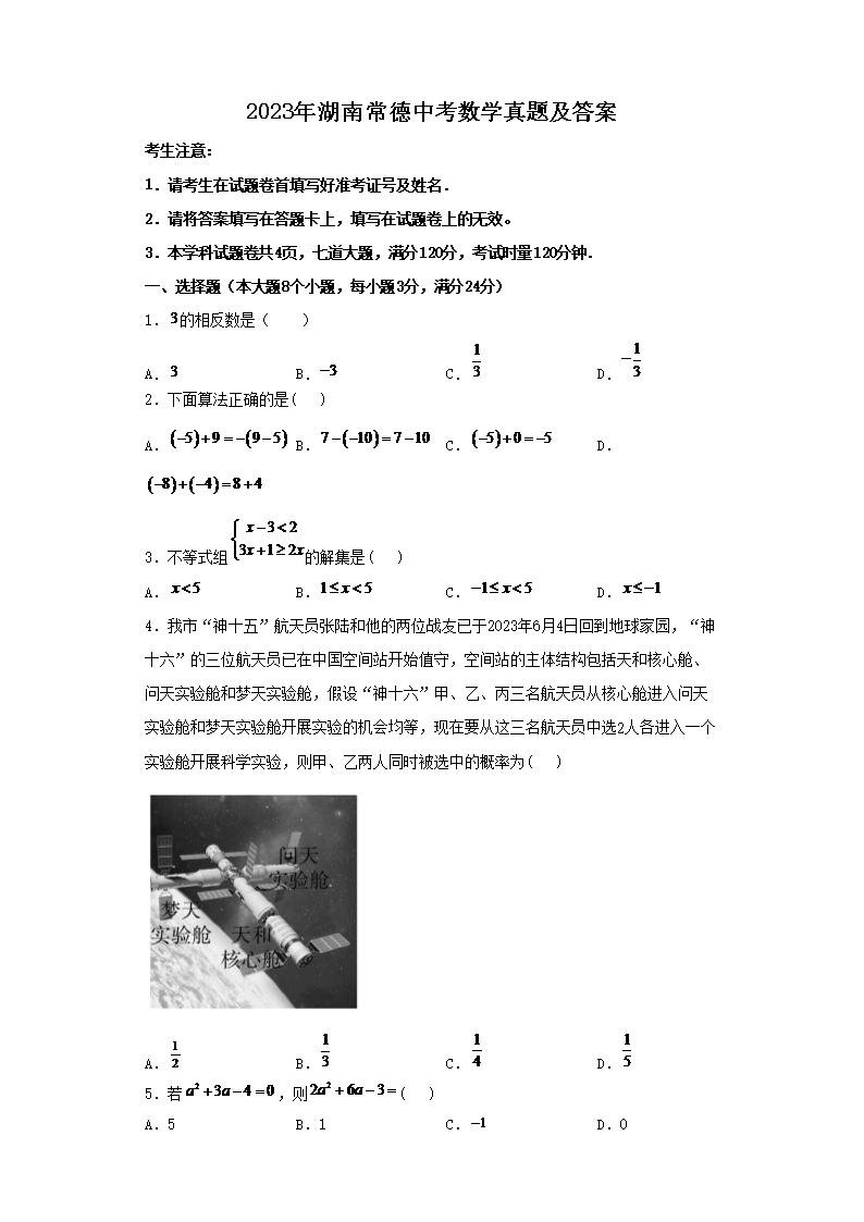 2023年湖南常德中考数学真题及答案(Word版)08-22