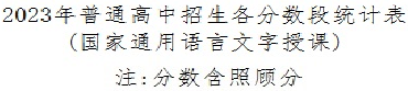 内蒙古呼和浩特2023年普通高中招生各分数段统计表(国家通用语言文字授课)07-14