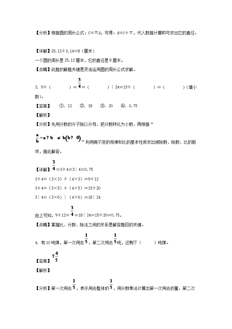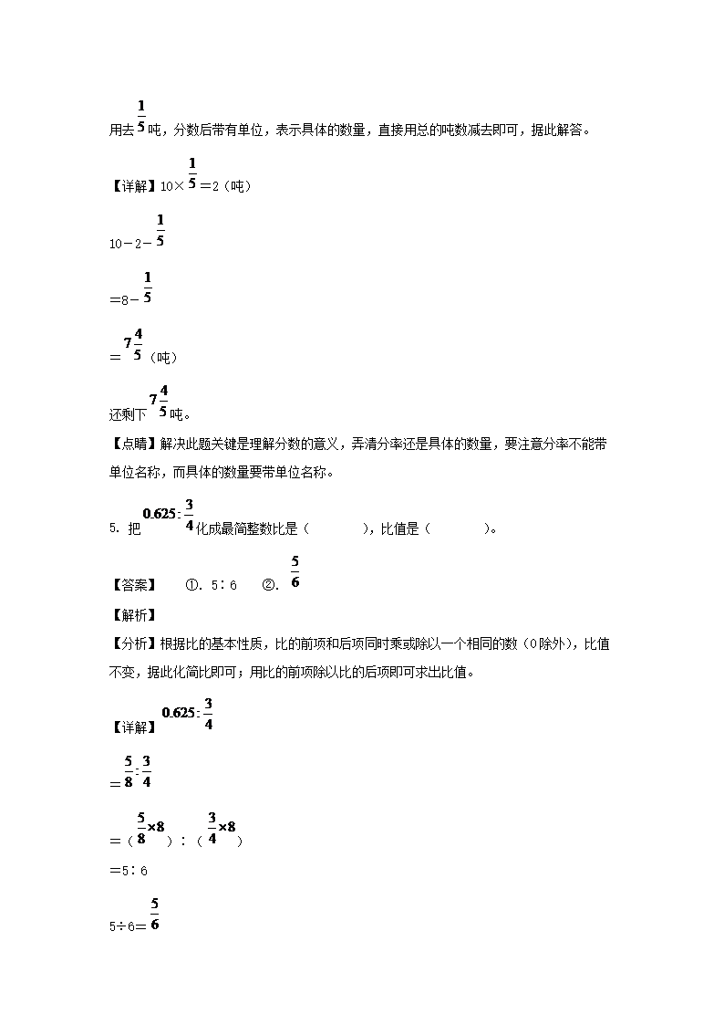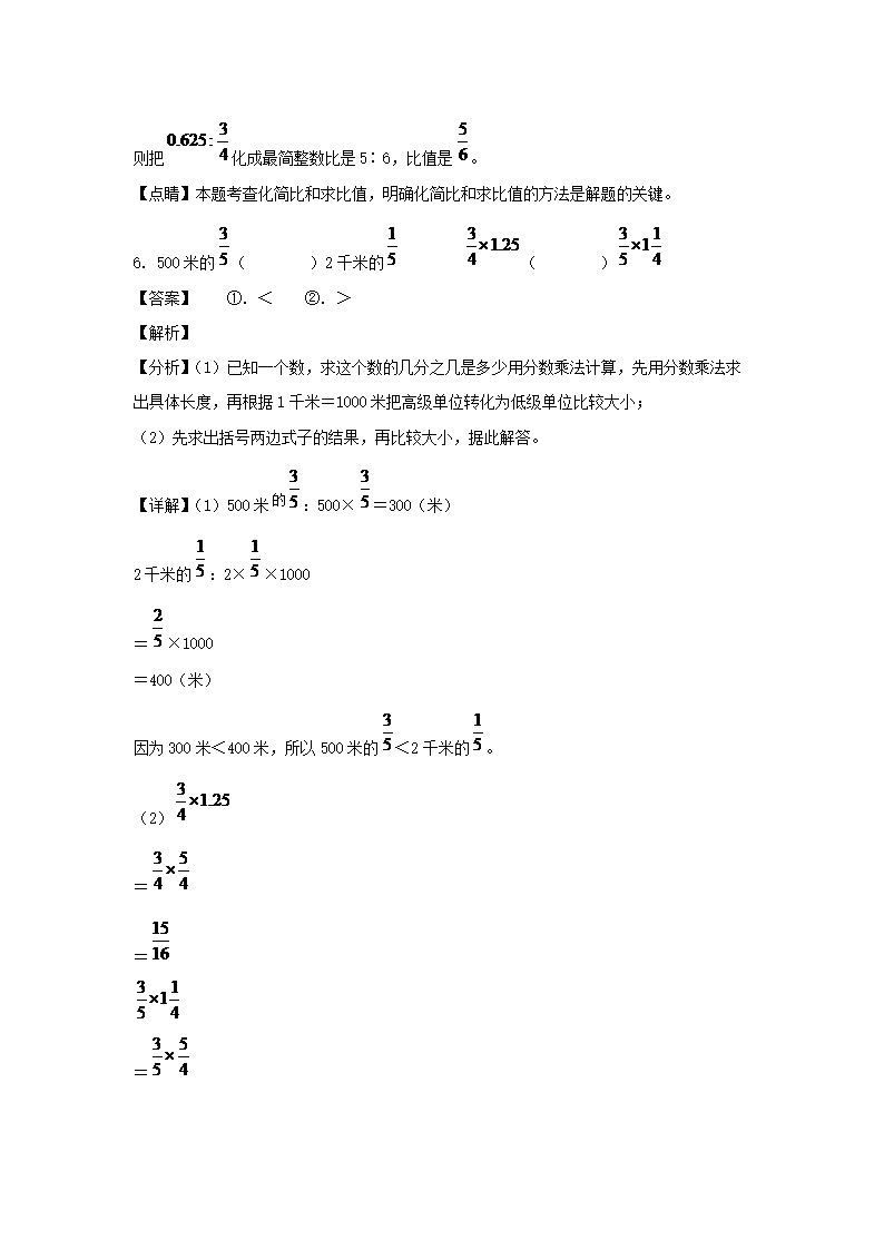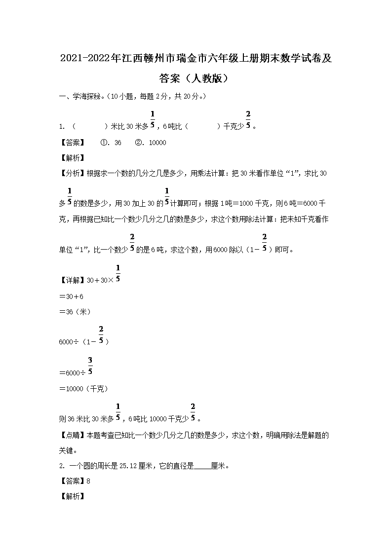 2021-2022年江西赣州市瑞金市六年级上册期末数学试卷及答案(人教版)(Word版)10-11