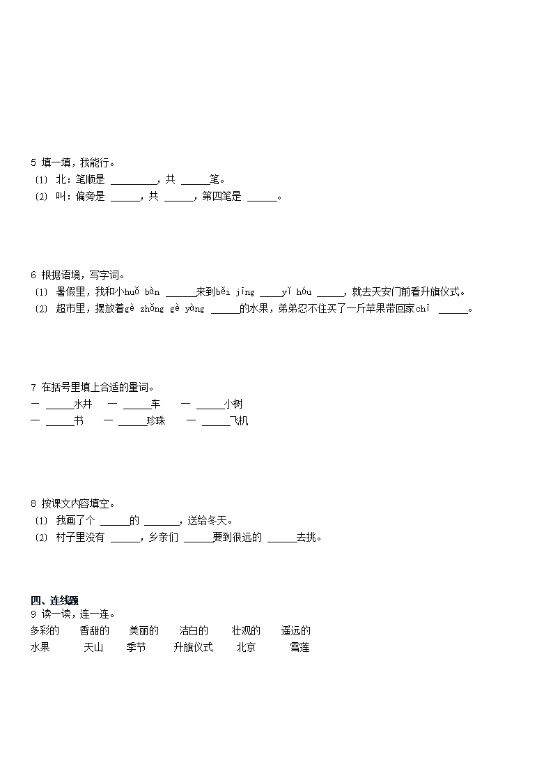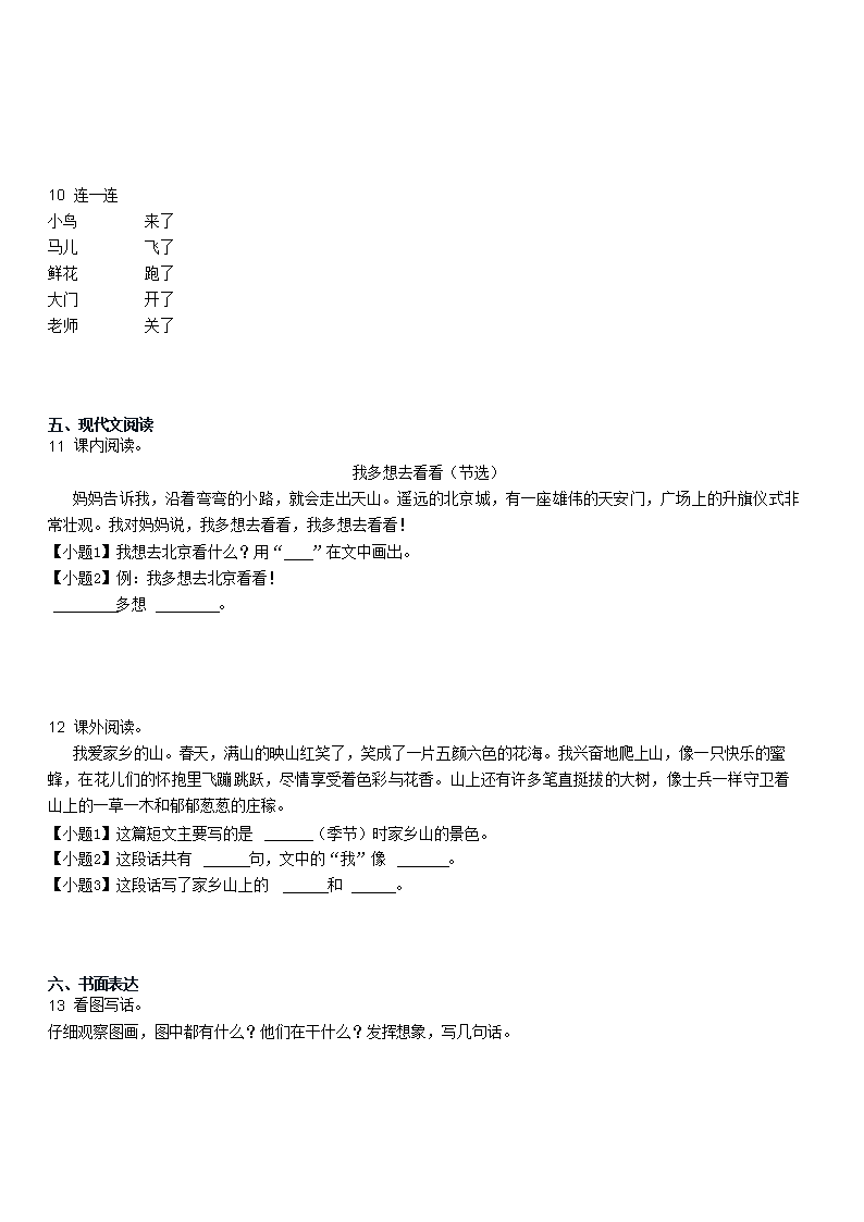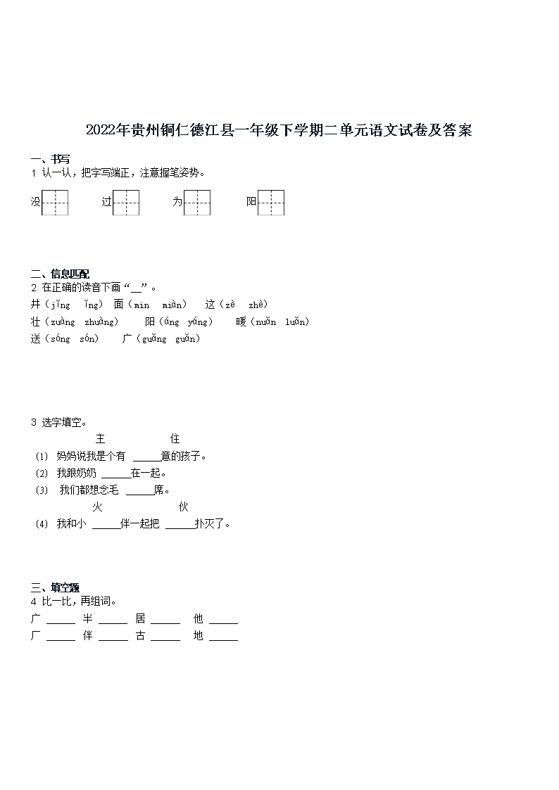 2022年贵州铜仁德江县一年级下学期二单元语文试卷及答案(Word版)08-11