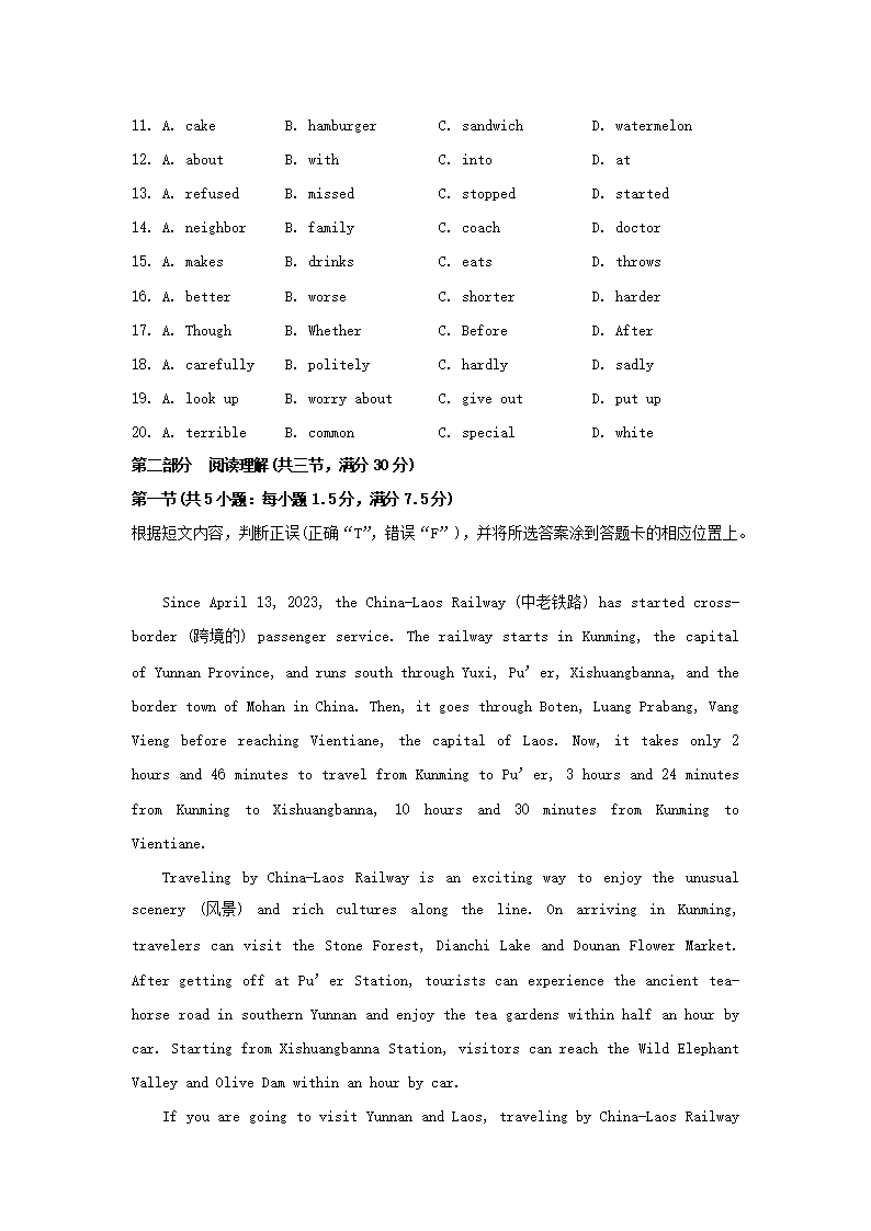 2023年云南迪庆中考英语试题及答案(Word版)06-20