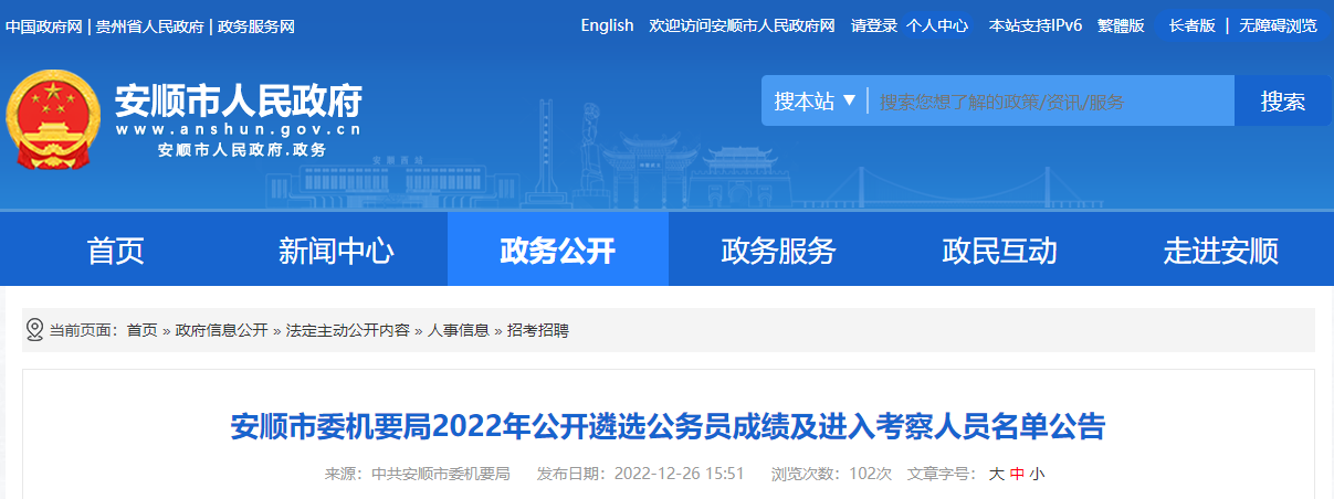 2022年贵州安顺市委机要局遴选公务员合格人员公示时间:12月26日-31日12-29