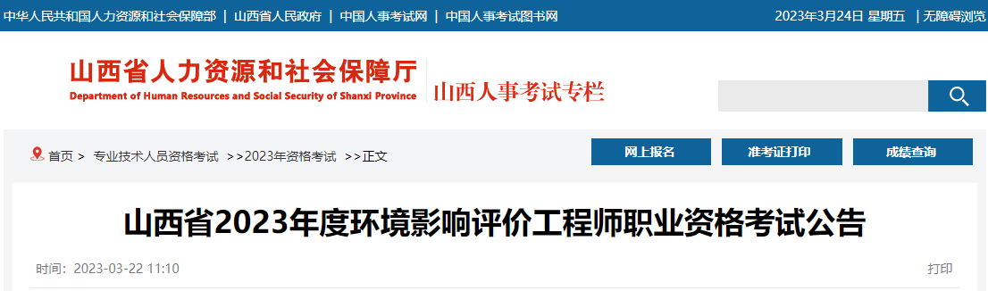 2023年山西环境影响评价工程师职业资格考试报名通知03-25