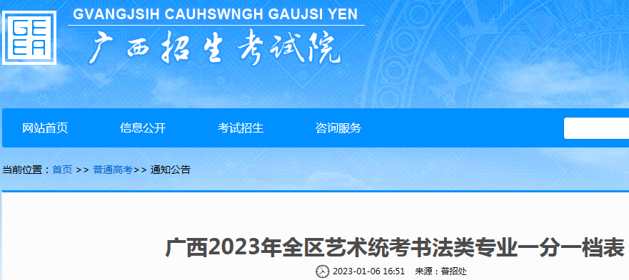 原文标题:广西2023年全区艺术统考书法类专业一分一档表