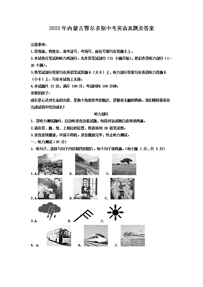 【文档预览】 文档大全网整理发布2022年内蒙古鄂尔多斯中考英语真题及答案(Word版),前五页预览如下: