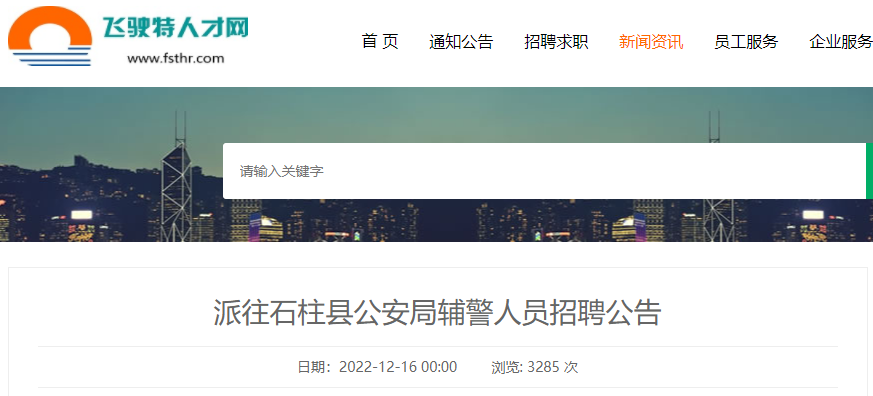 招聘职位、人数及条件详见附件《重庆飞驶特人力资源公司石柱分公司派往县公安局辅警招聘条件一览表》。
