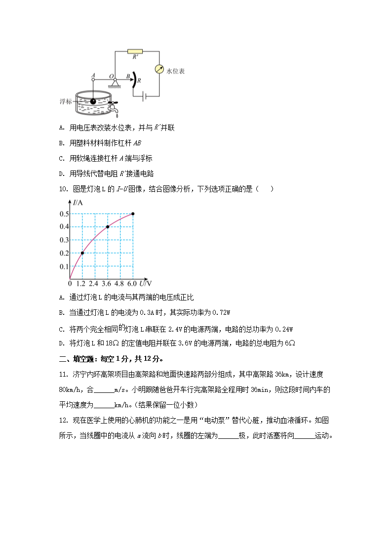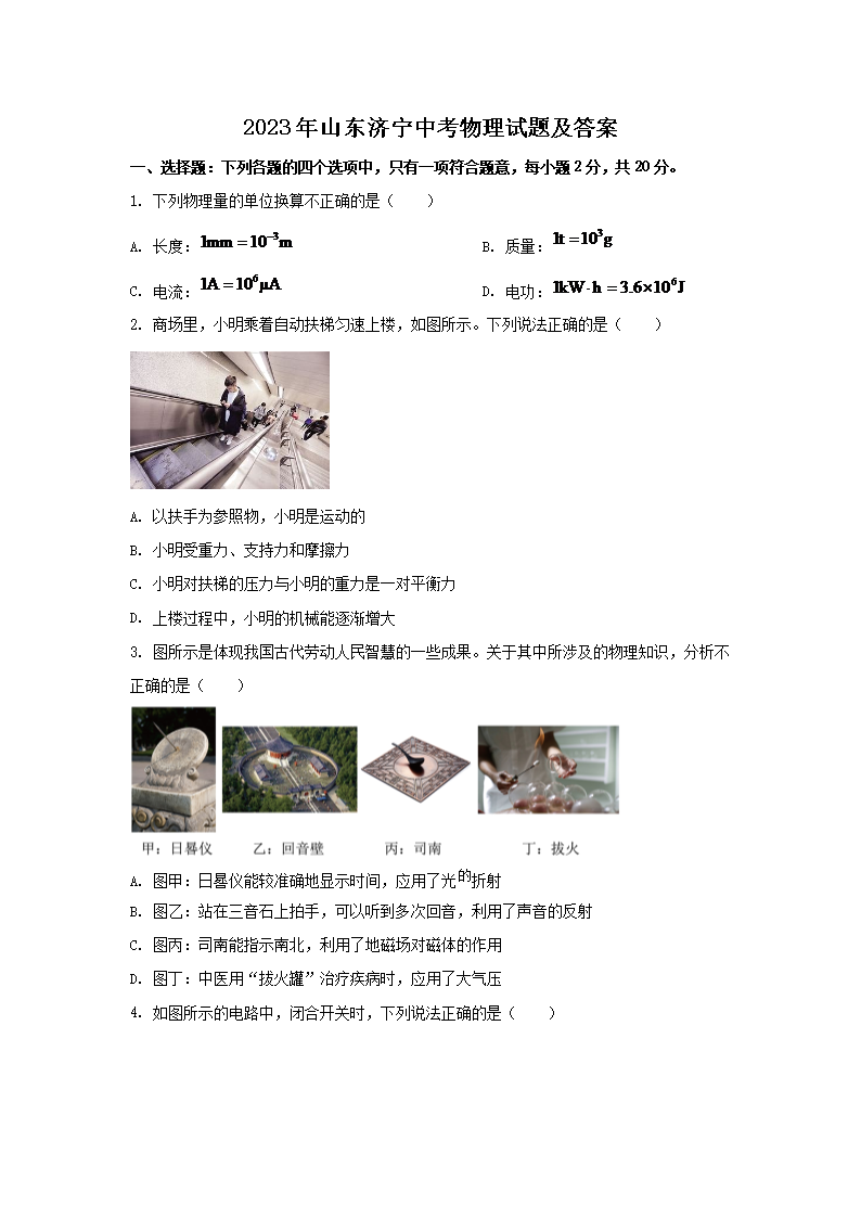 2023年山东济宁中考物理试题及答案(Word版)07-01