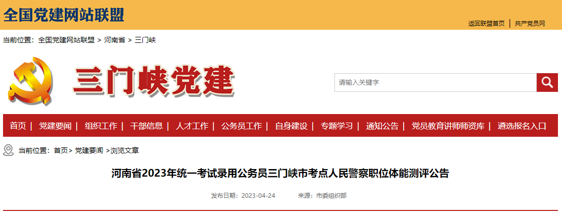 原文标题:河南省2023年统一考试录用公务员三门峡市考点人民警察职位体能测评公告