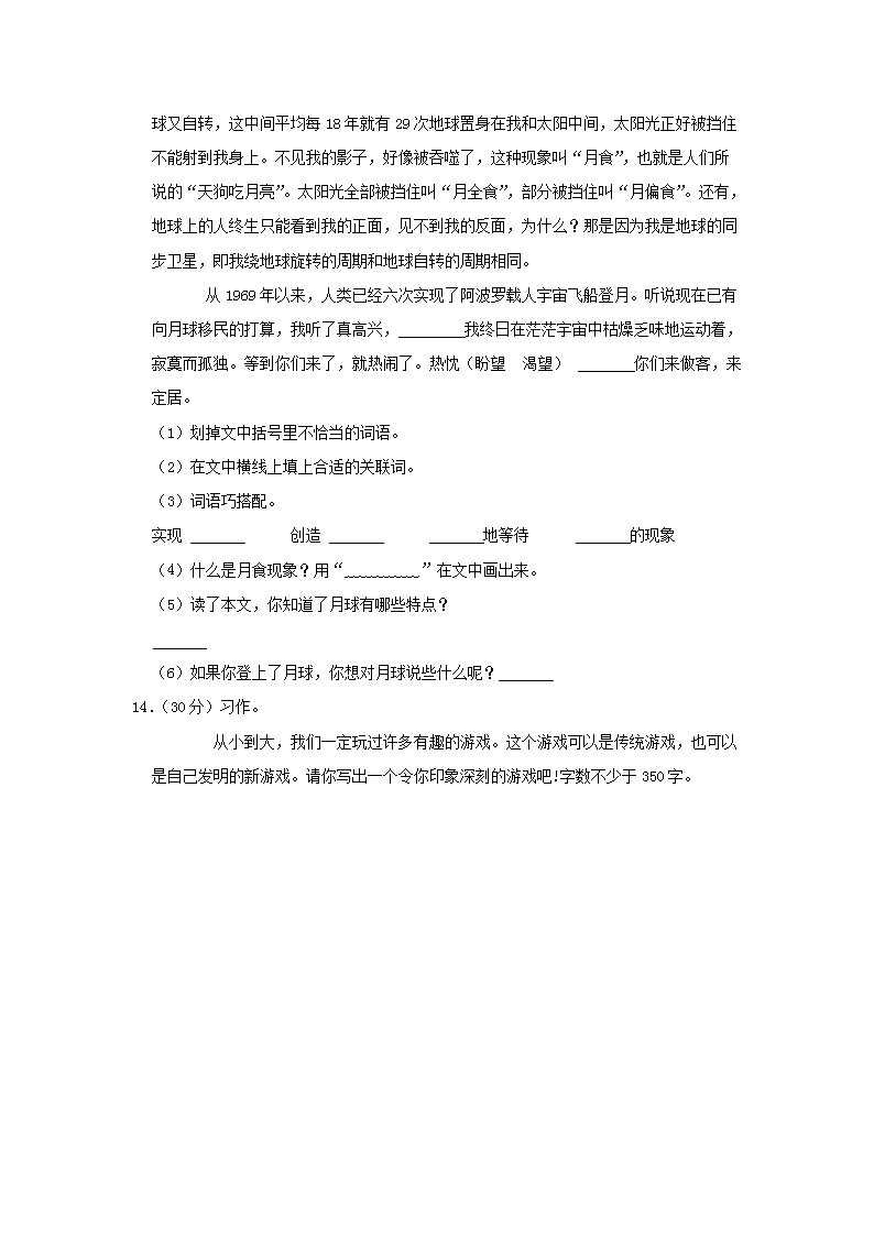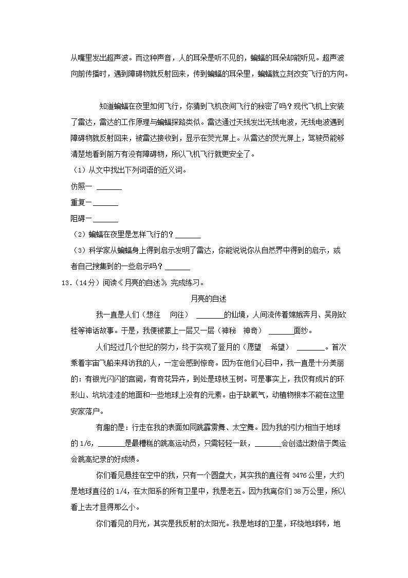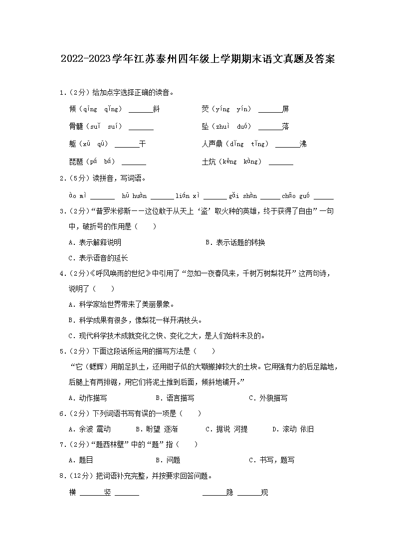 2022-2023学年江苏泰州四年级上学期期末语文真题及答案(Word版)09-16
