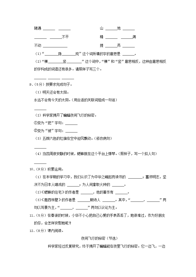 【文档预览】 文档大全网整理发布2022-2023学年江苏泰州四年级上学期期末语文真题及答案(Word版),前五页预览如下: