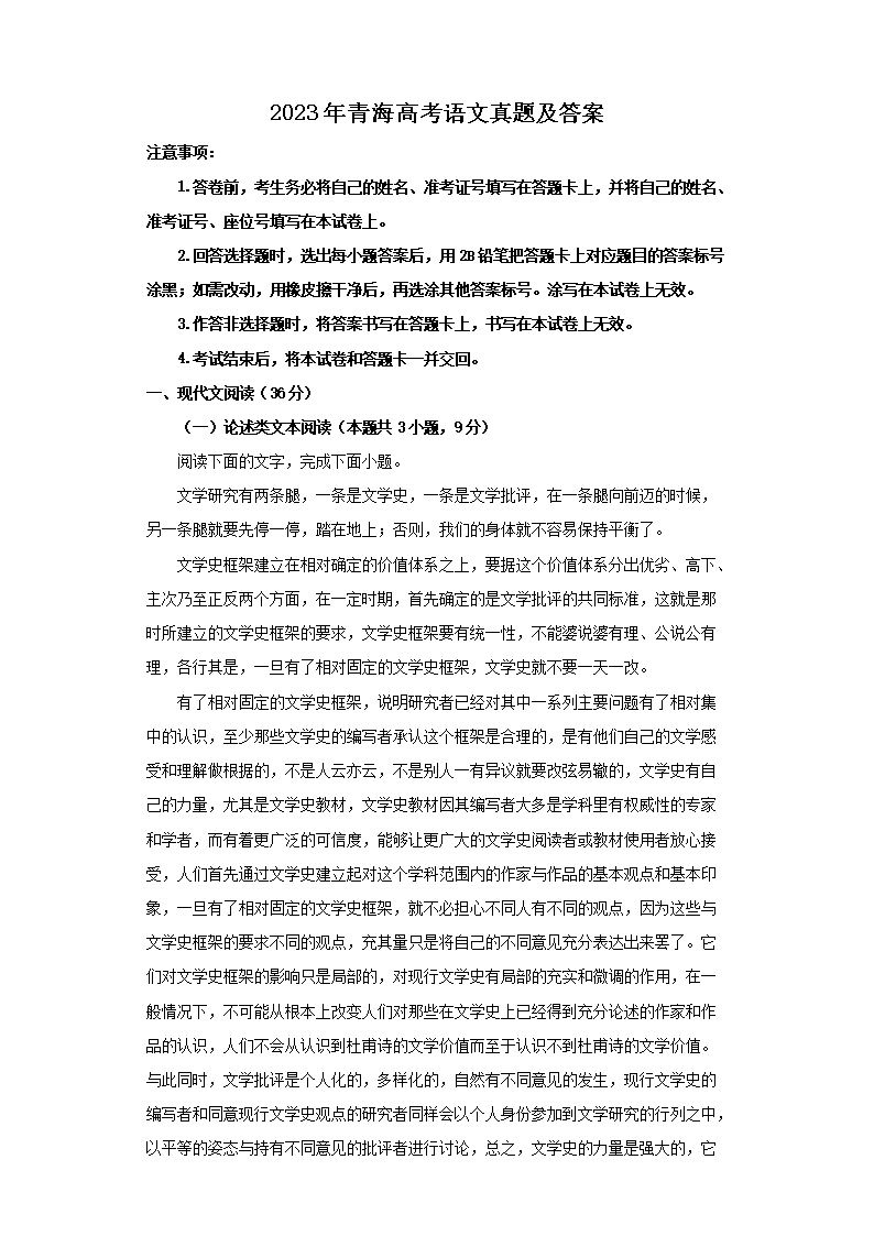 2023年青海高考语文真题及答案(Word版)06-14