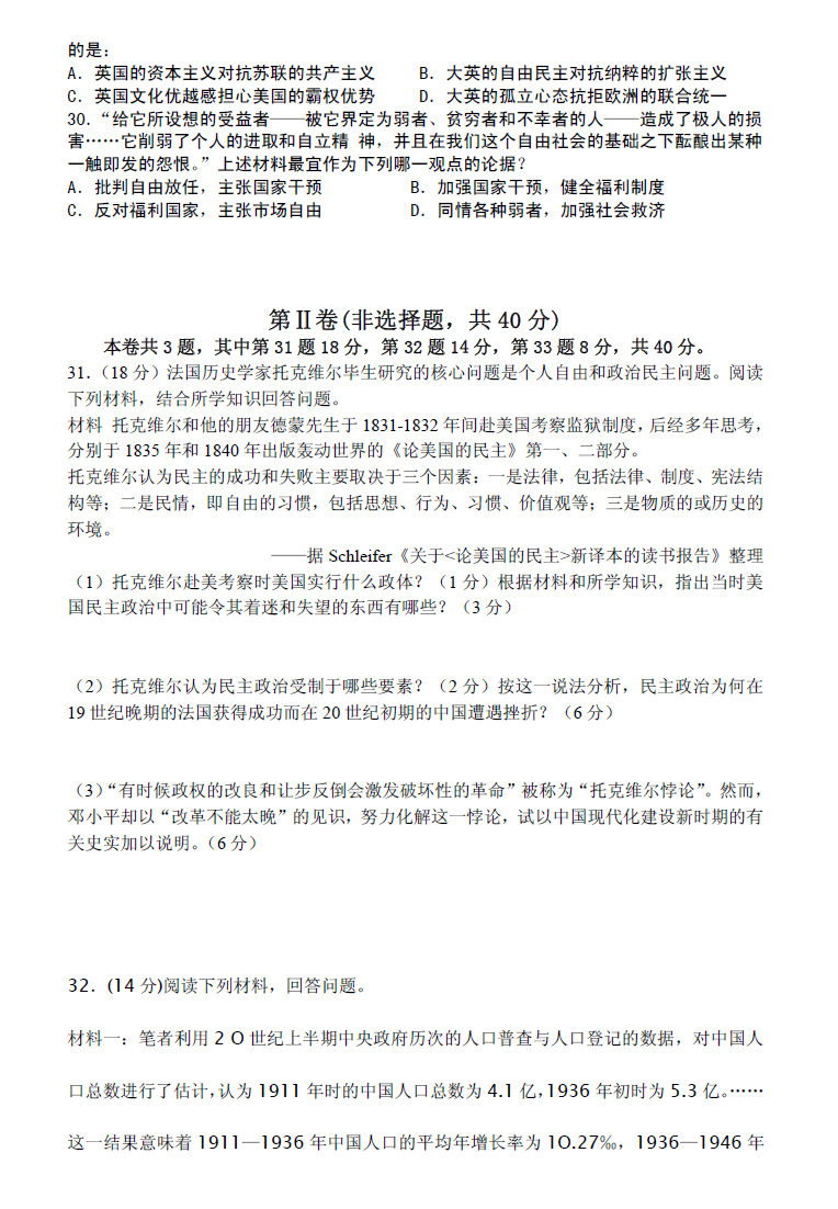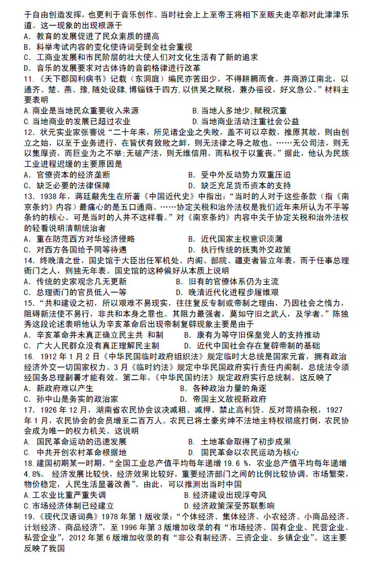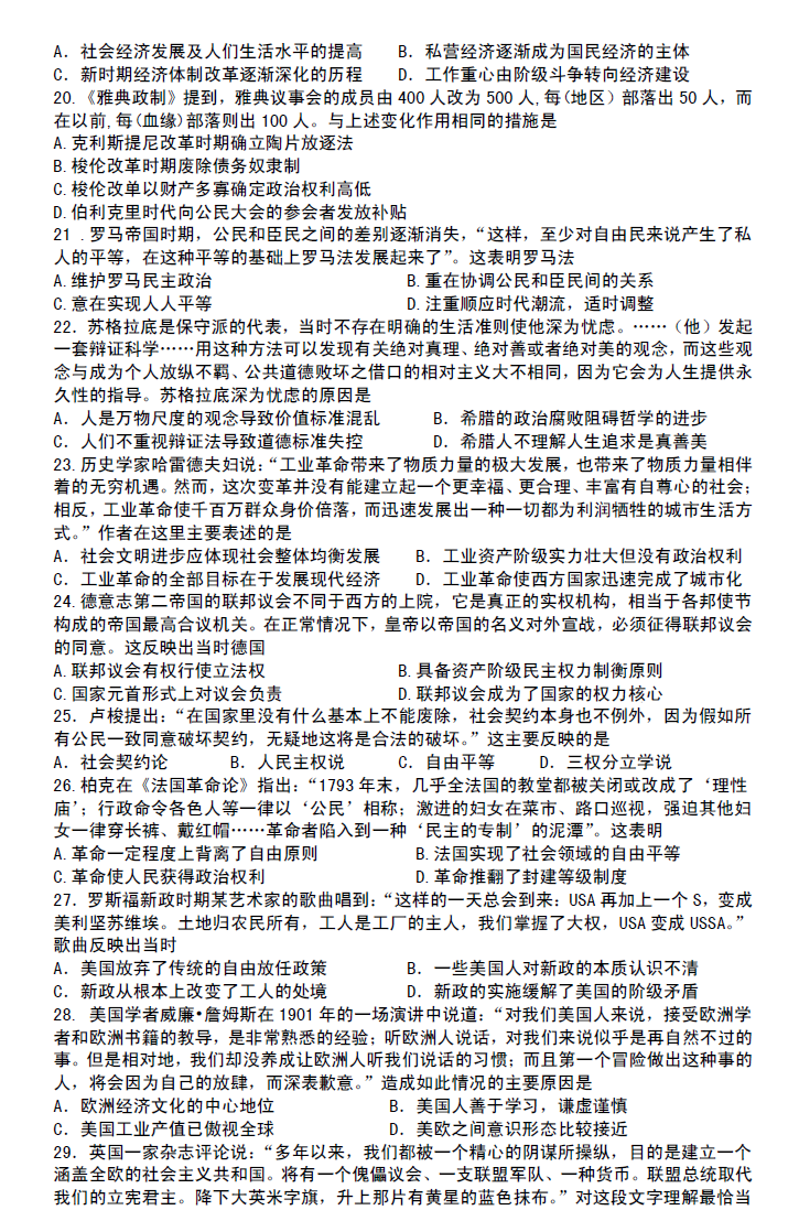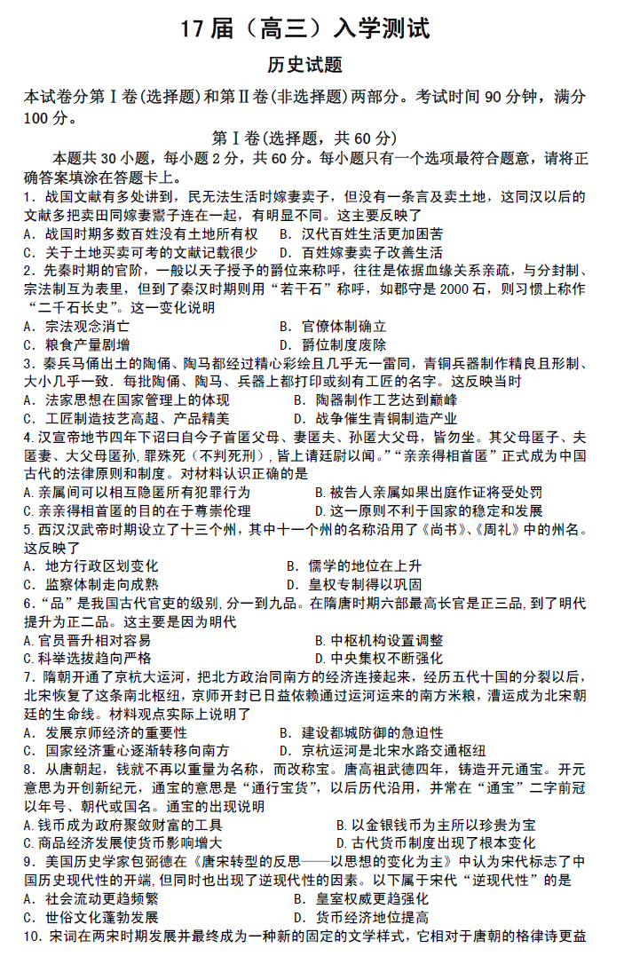 河南省郑州市第一中学网校2017届高三入学测试历史试题03-25