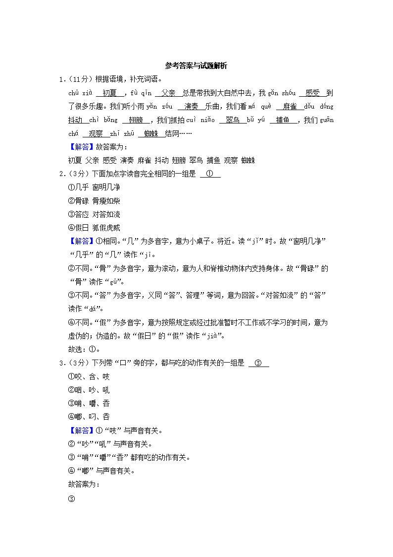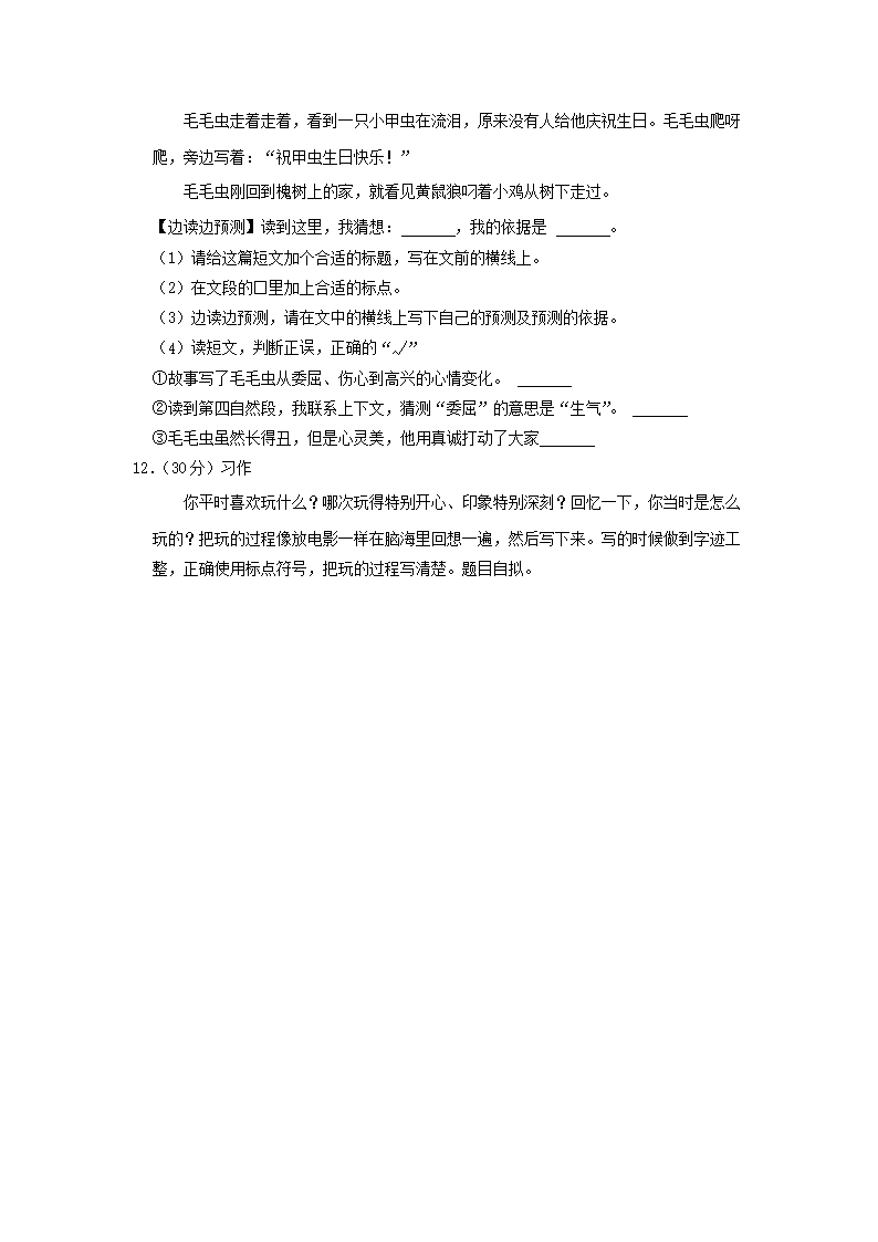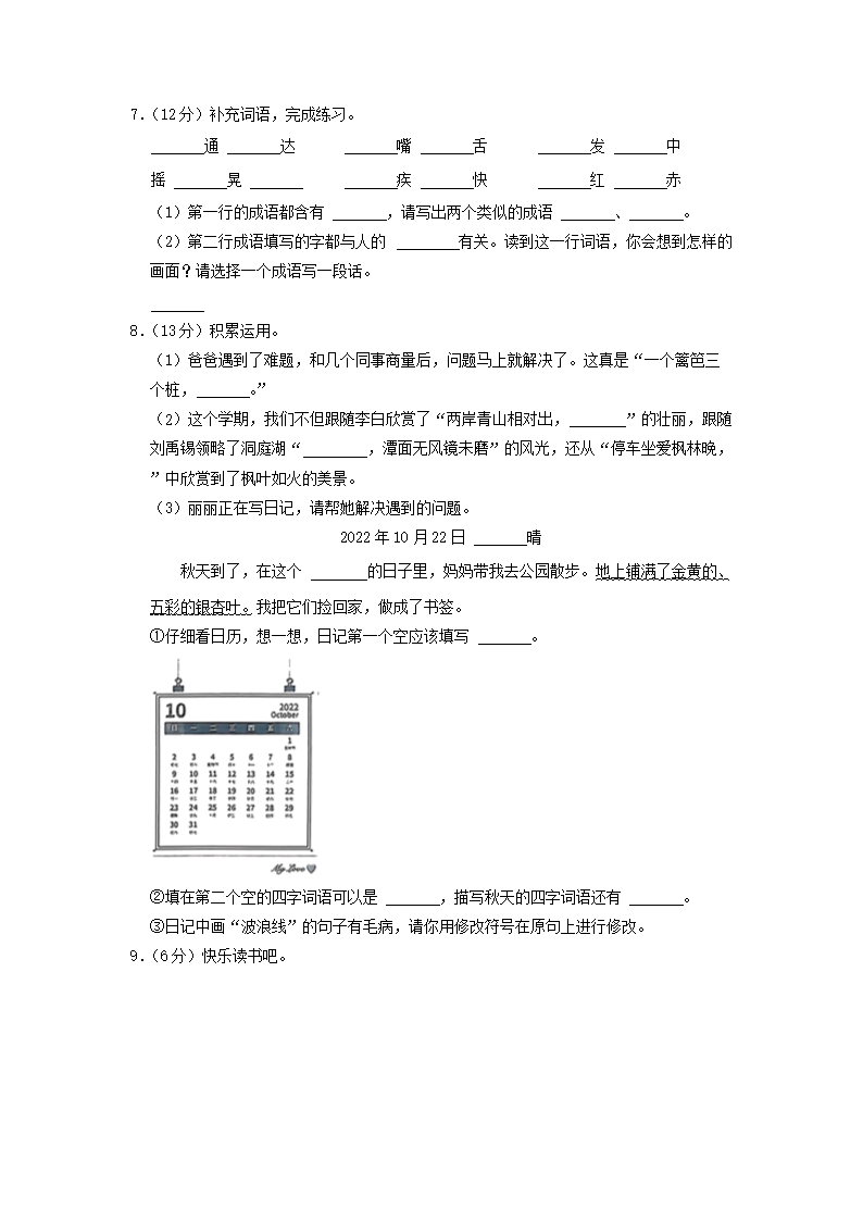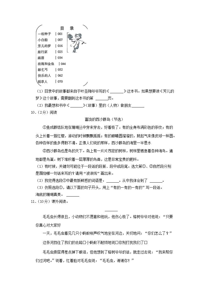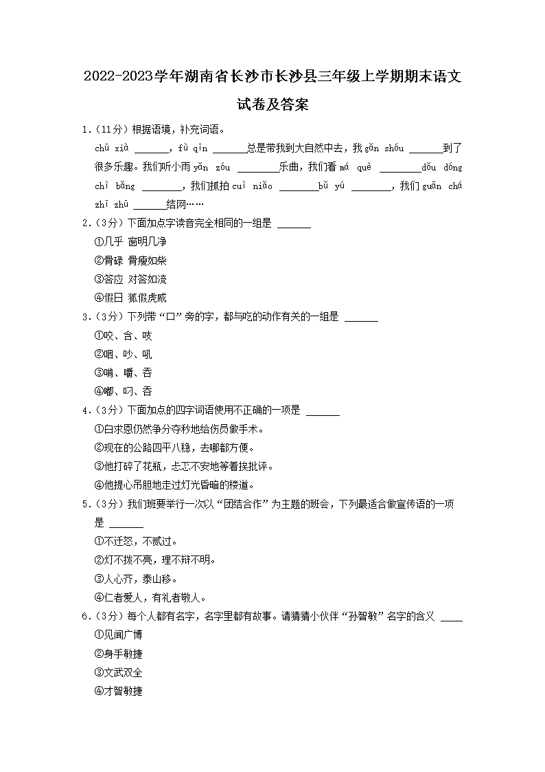 2022-2023学年湖南省长沙市长沙县三年级上学期期末语文试卷及答案(Word版)09-26