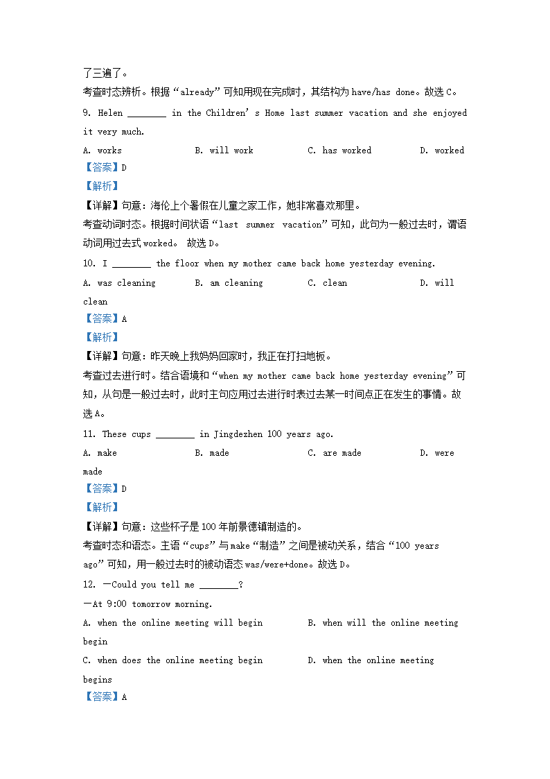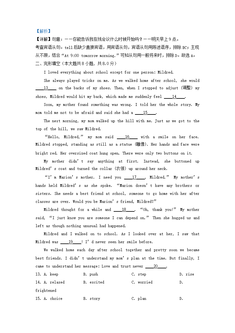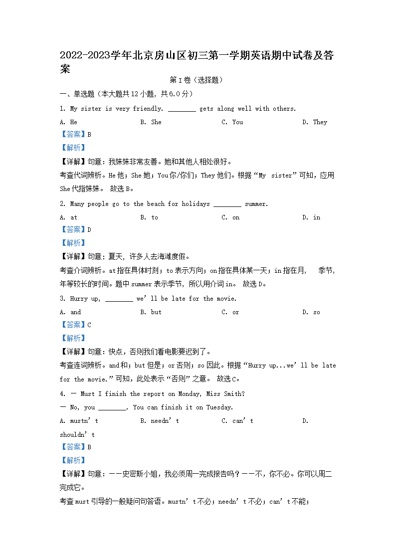 2022-2023学年北京房山区初三第一学期英语期中试卷及答案(Word版)08-16