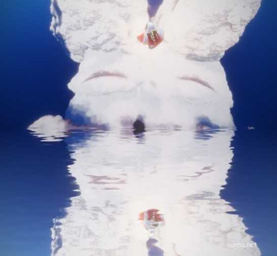 6、视角往下拉,就可以看到巨大的兔子云的。