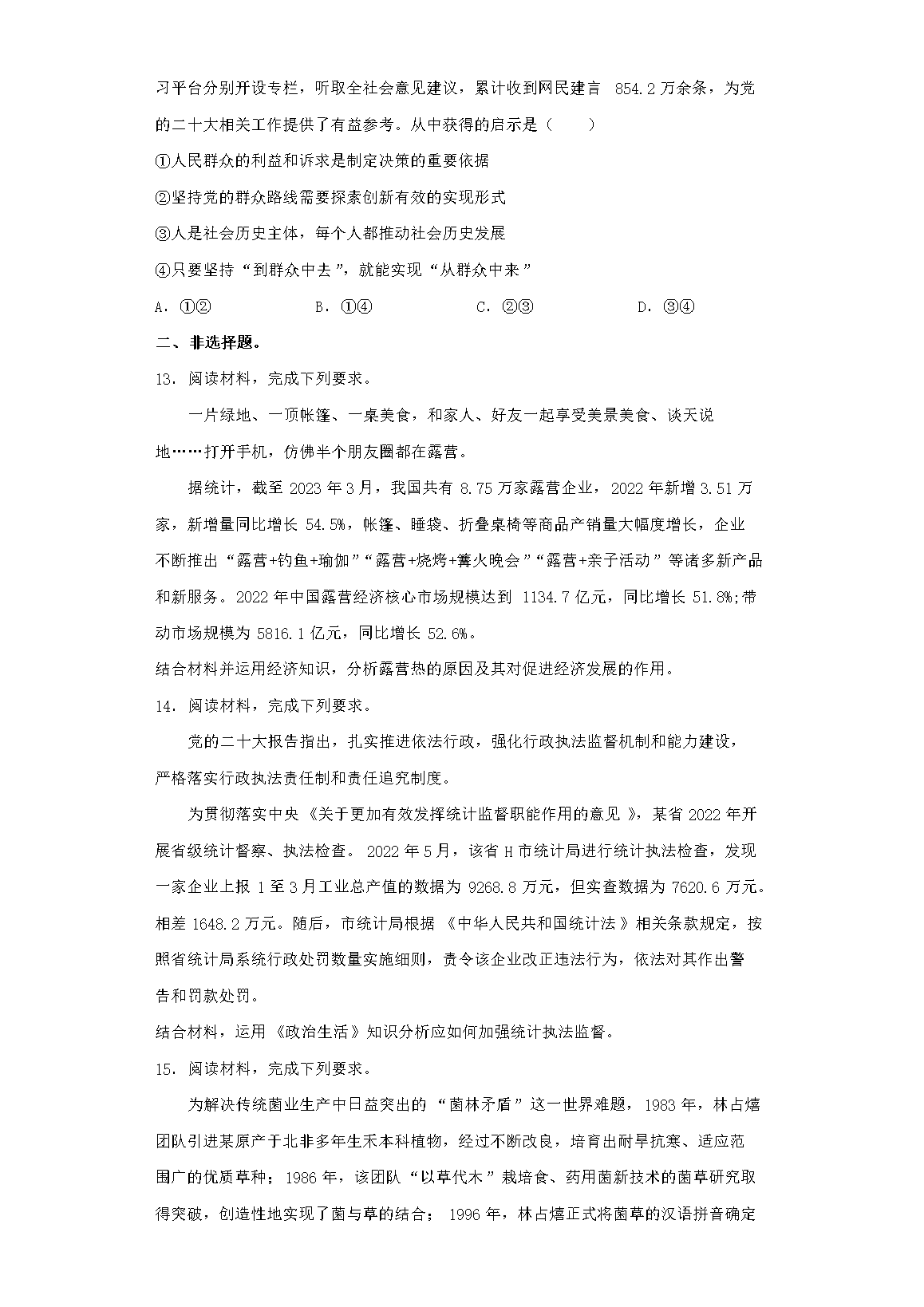 2023年贵州高考政治真题及答案(Word版)06-12