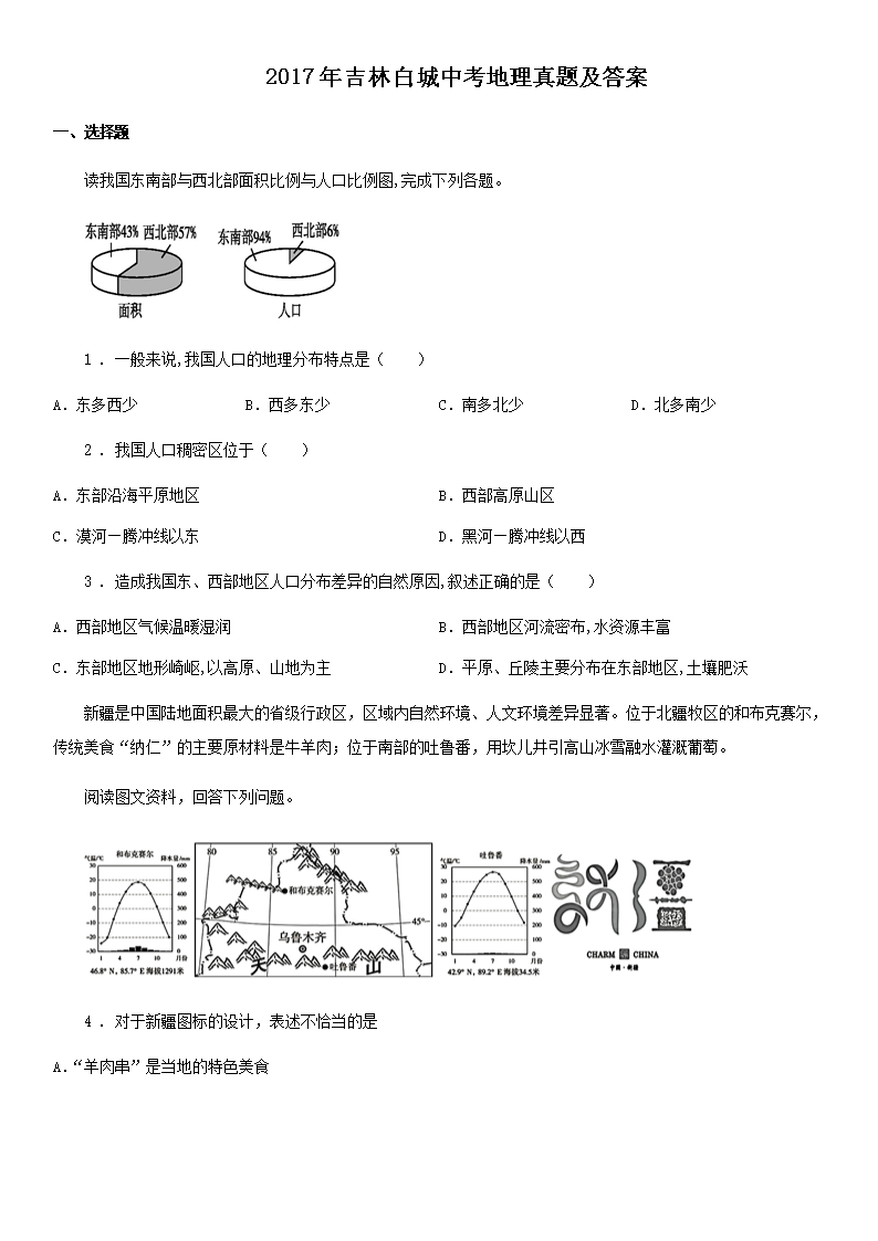 2017年吉林白城中考地理真题及答案(Word版)06-06