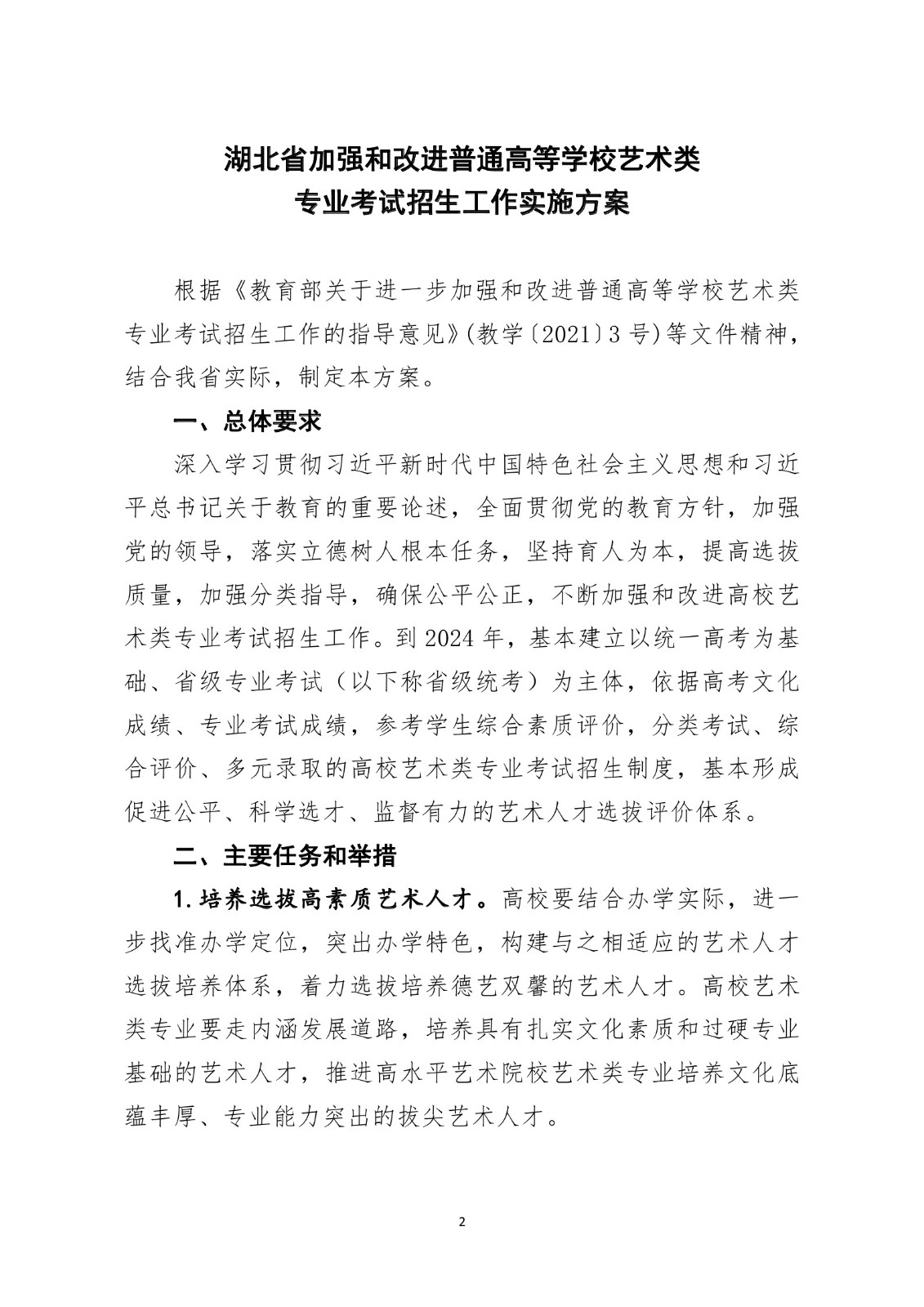 湖北省加强和改进普通高校艺术类专业考试招生工作实施方案01-20