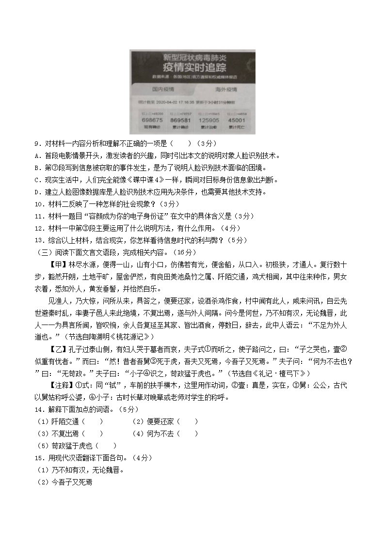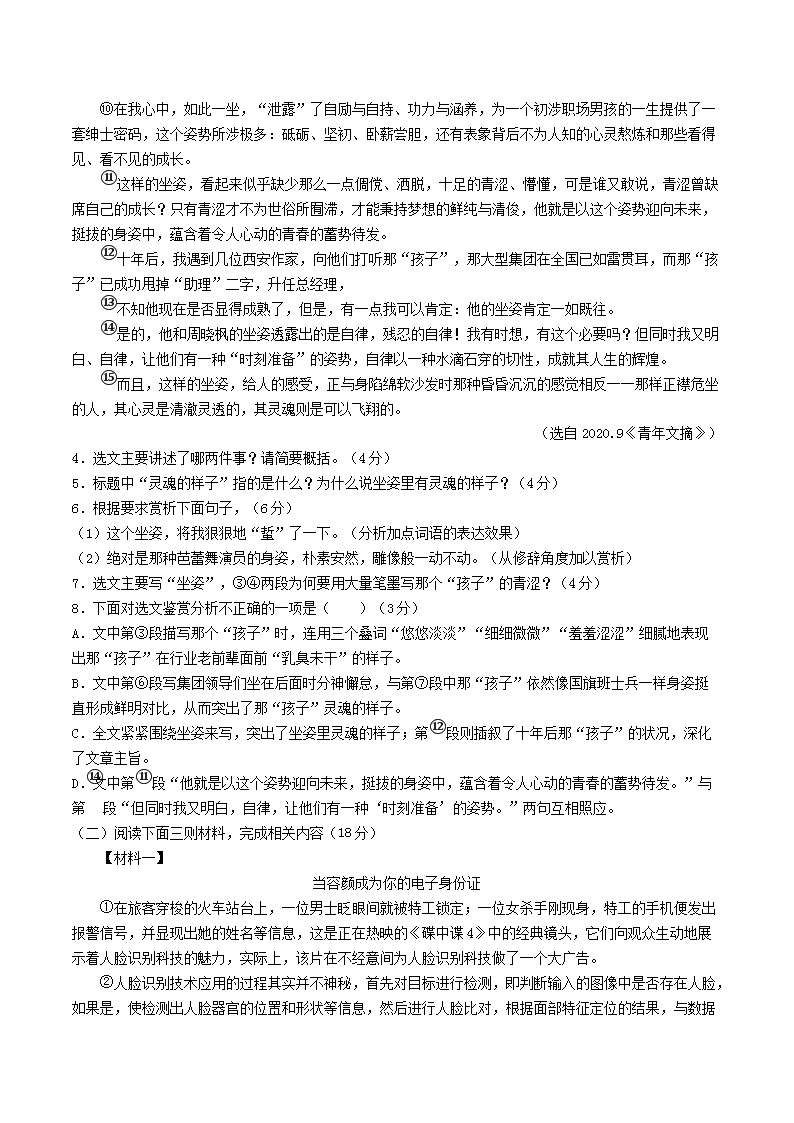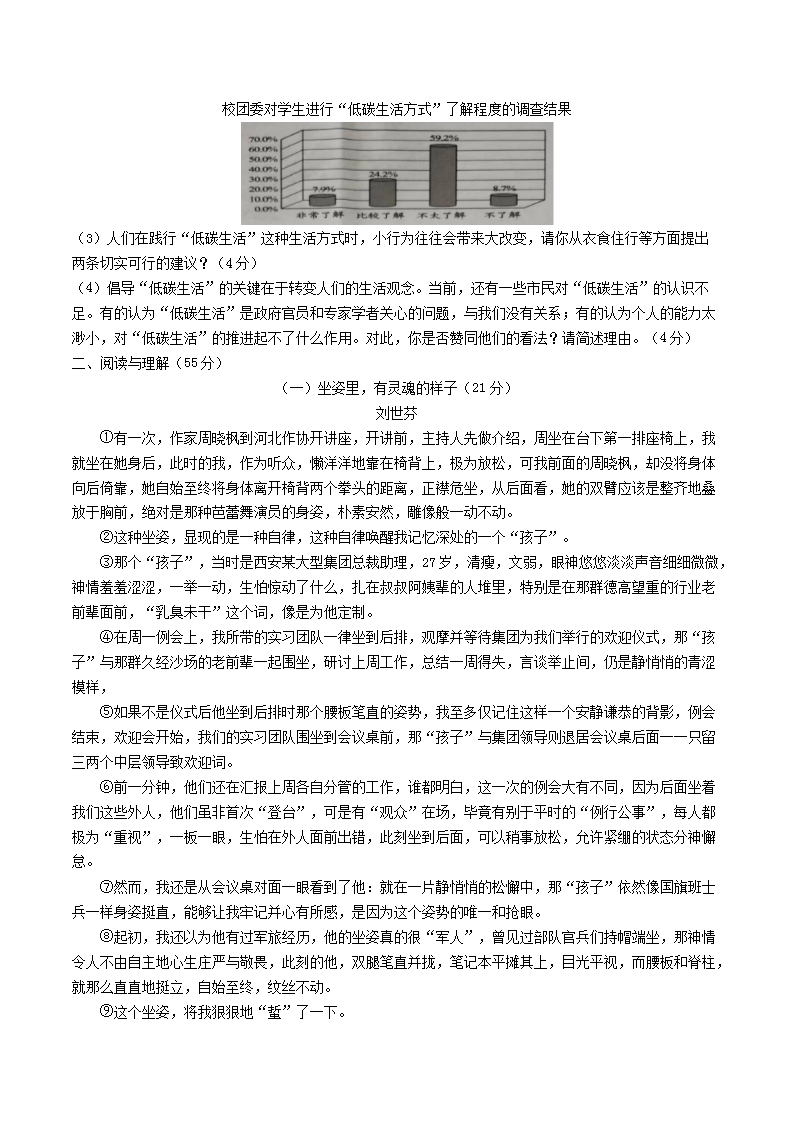 2021-2022学年安徽省合肥市庐江县八年级下学期期中语文试题及答案(Word版)10-17